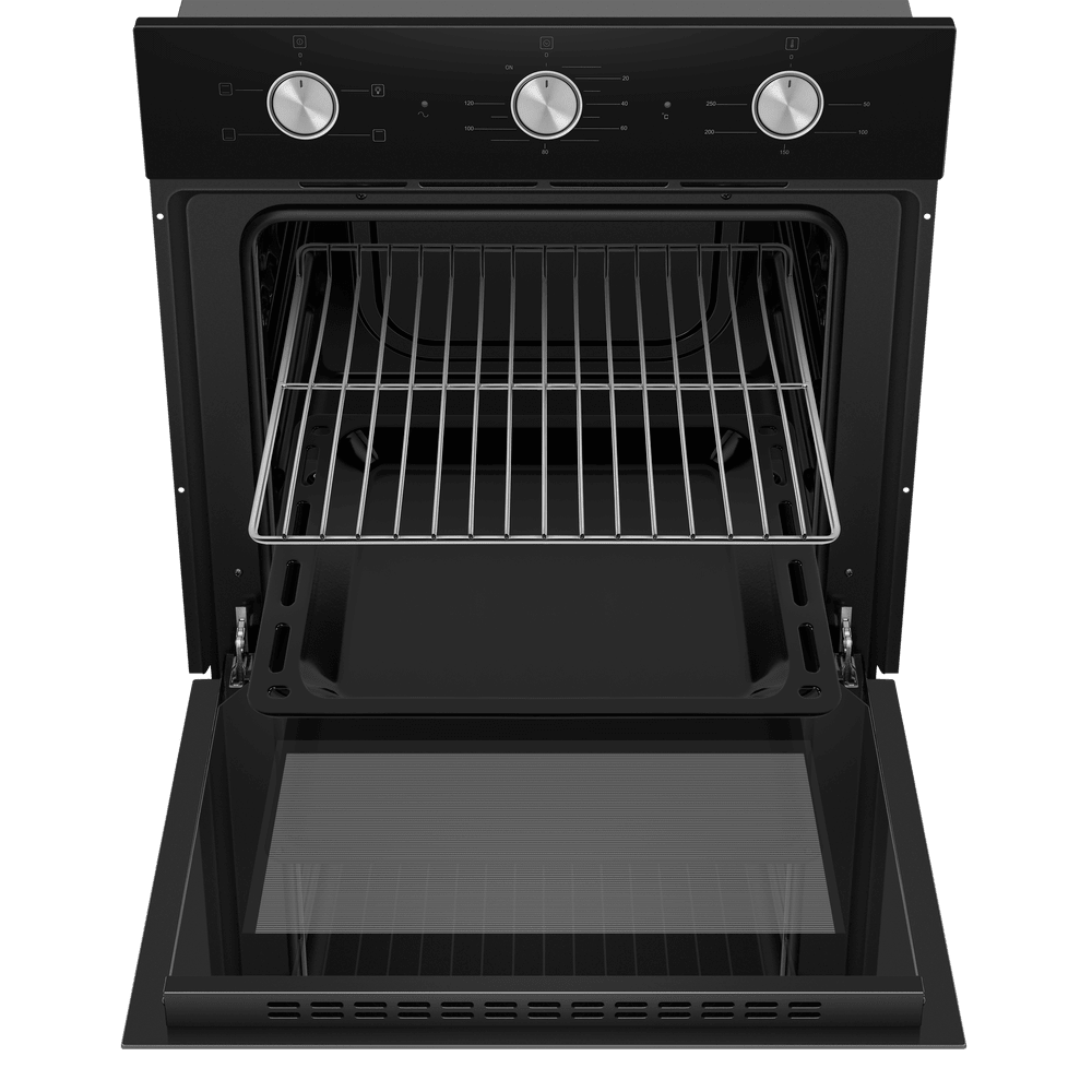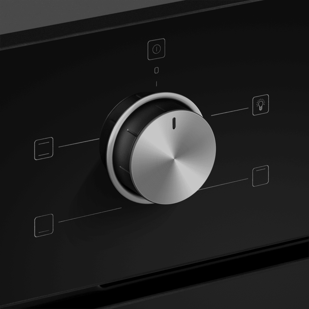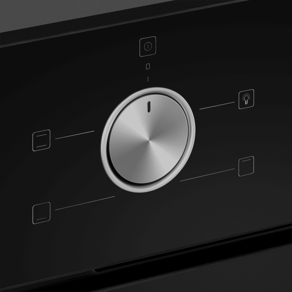 Встраиваемый духовой шкаф с фронтальной панелью из высококачественного жаропрочного тонированного стекла. Дизайн модели дополнен утапливаемыми регуляторами PUSH PULL увеличенного диаметра.