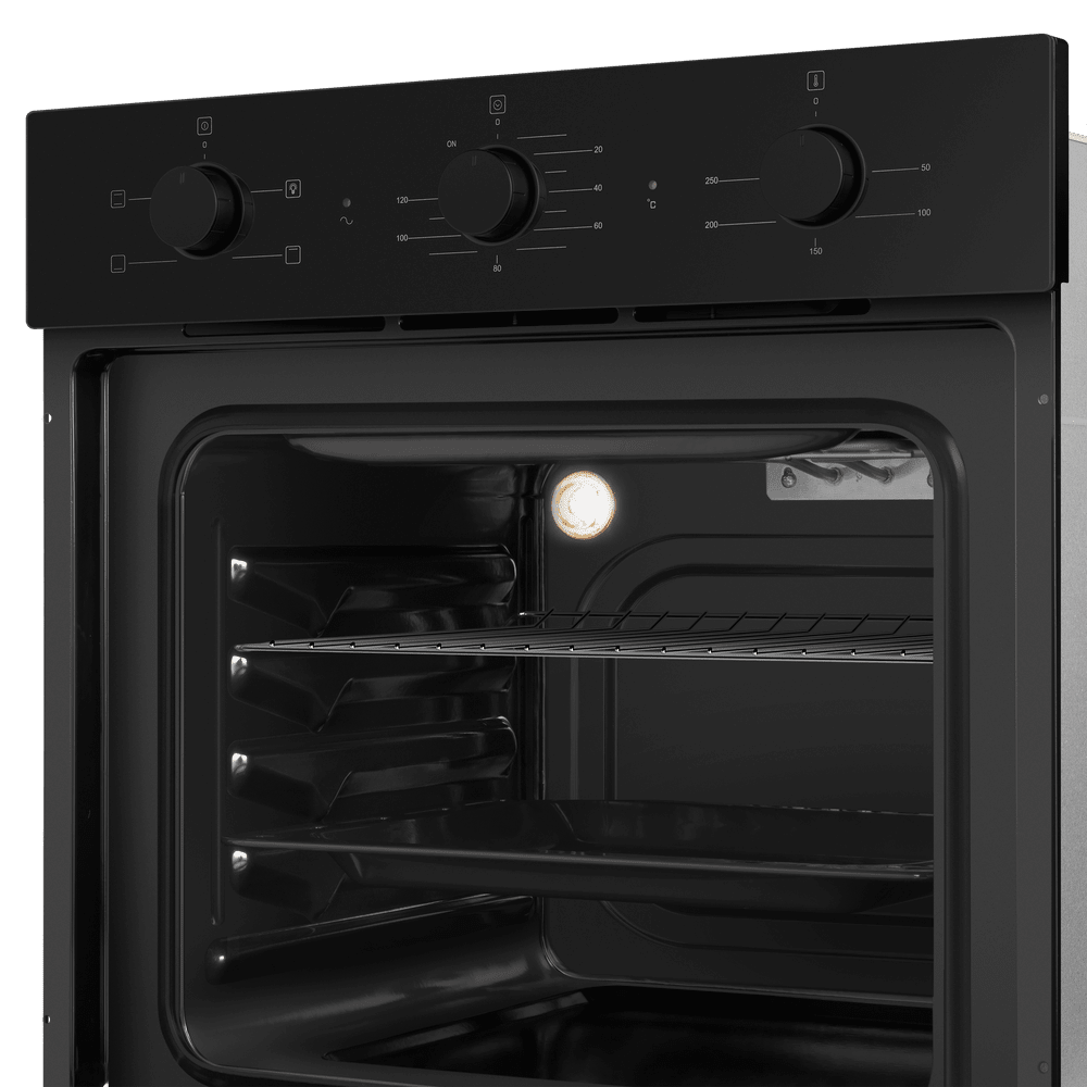 Встраиваемый духовой шкаф с фронтальной панелью из высококачественного жаропрочного тонированного стекла. Дизайн модели дополнен утапливаемыми регуляторами PUSH PULL увеличенного диаметра.