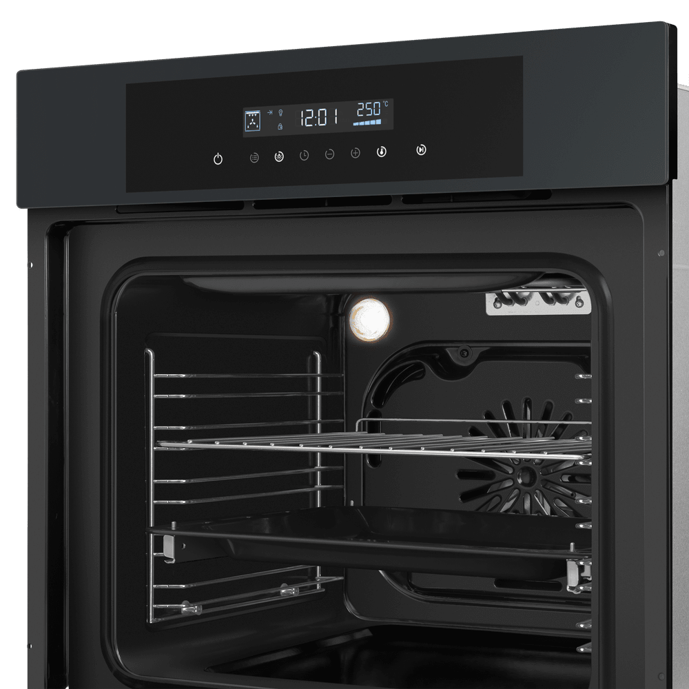 Духовой шкаф MAUNFELD AEOD6063 c телескопическими направляющими имеет функции: размораживания, гриля, конвекции и ЭКО.