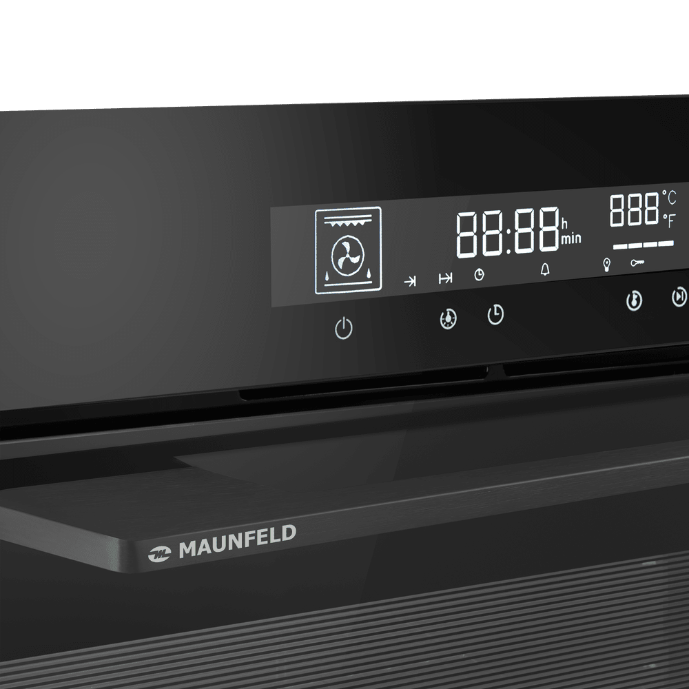 Электрический духовой шкаф MAUNFELD AEOD60106 — это современная модель, сочетающая высокую функциональность и элегантный дизайн. Он оснащен сенсорным управлением, режимом конвекции и электрическим грилем, а его ключевыми особенностями являются удобная гидролизная система очистки, телескопические направляющие, рецепты на дверце и стильная тонкая ручка с логотипом бренда.