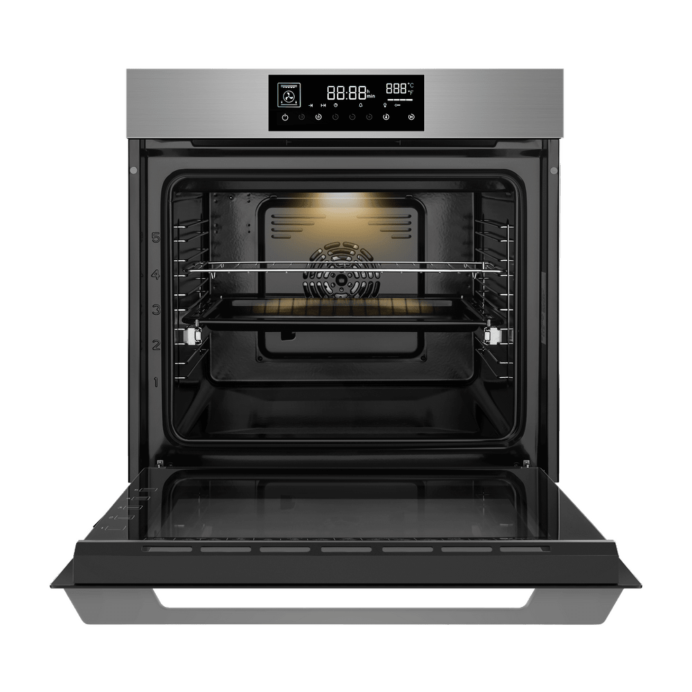 Электрический духовой шкаф MAUNFELD AEOD60106 — это современная модель, сочетающая высокую функциональность и элегантный дизайн. Он оснащен сенсорным управлением, режимом конвекции и электрическим грилем, а его ключевыми особенностями являются удобная гидролизная система очистки, телескопические направляющие, рецепты на дверце и стильная тонкая ручка с логотипом бренда.