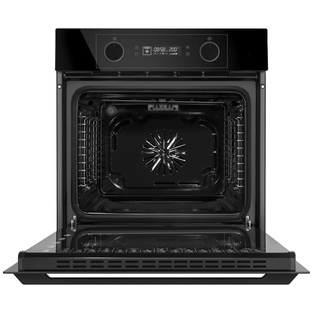 Электрический встраиваемый духовой шкаф с фронтальной панелью из высококачественного жаропрочного стекла. Дизайн модели дополнен утапливаемыми регуляторами PUSH PULL увеличенного диаметра.