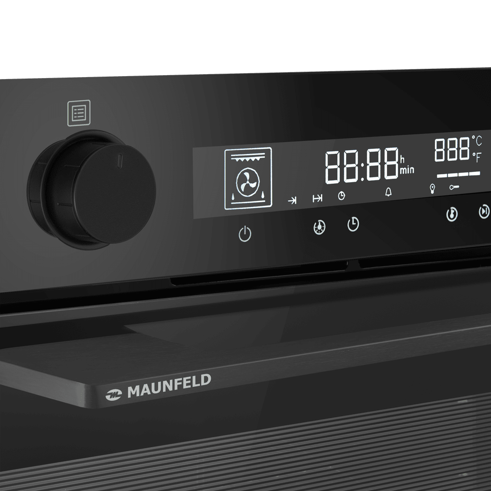 Электрический духовой шкаф MAUNFELD AEOH606 — это современная модель, сочетающая высокую функциональность и элегантный дизайн. Он оснащен электронным управлением, режимом конвекции и электрическим грилем, а его ключевыми особенностями являются удобная гидролизная система очистки, рецепты на дверце и стильная тонкая ручка с логотипом бренда.