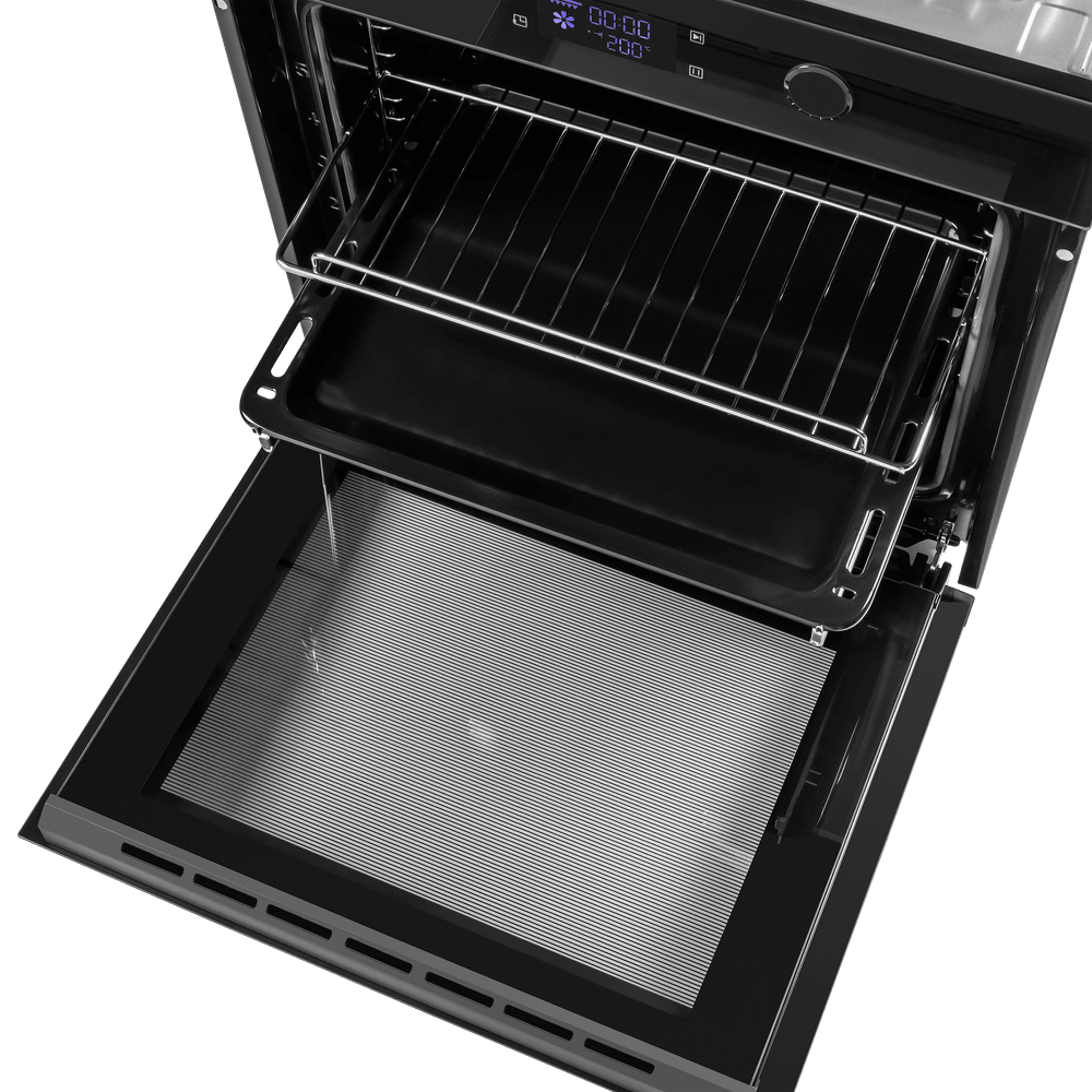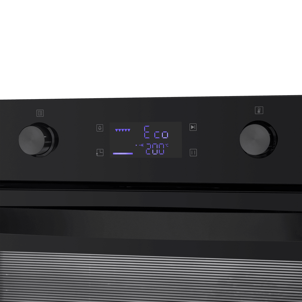 Электрический встраиваемый духовой шкаф с фронтальной панелью из высококачественного жаропрочного тонированного стекла.