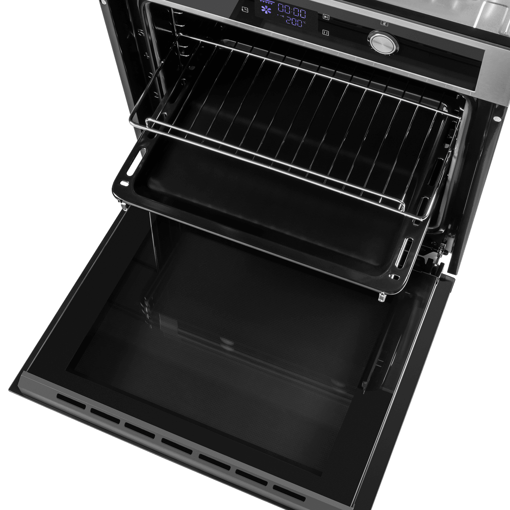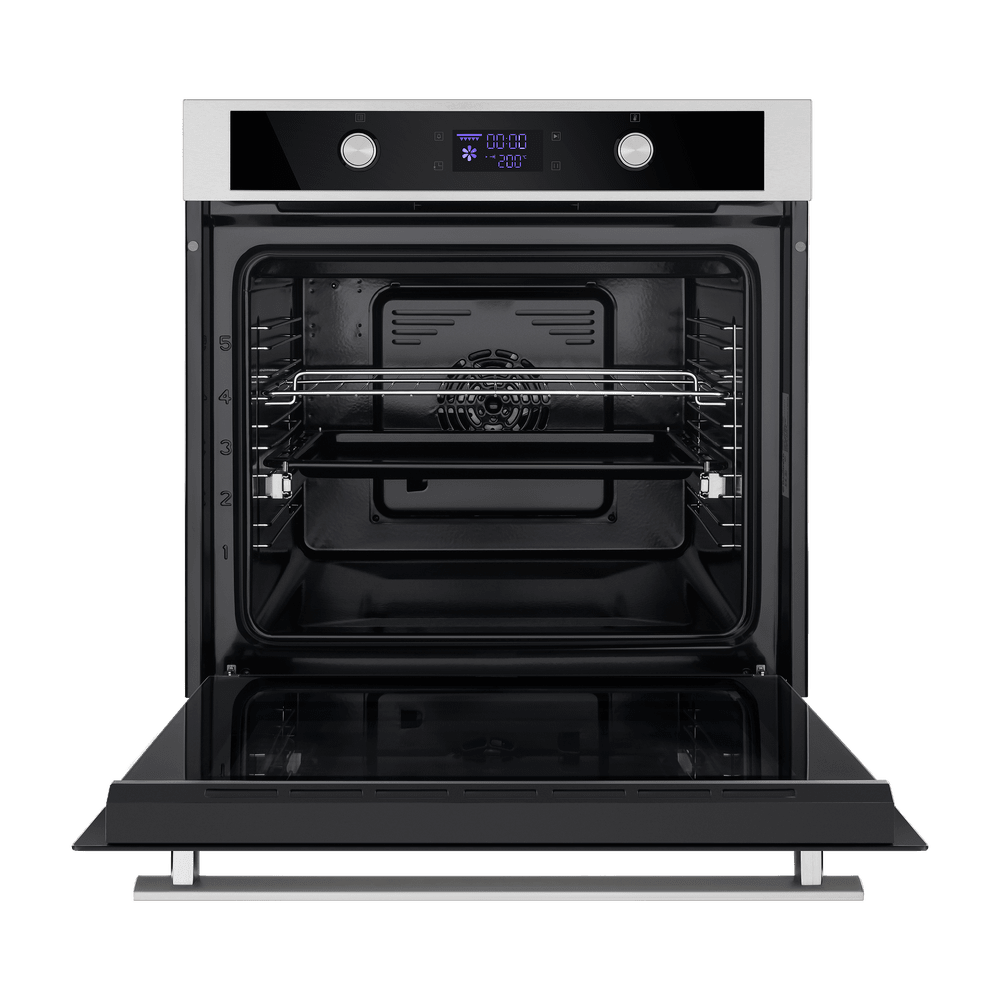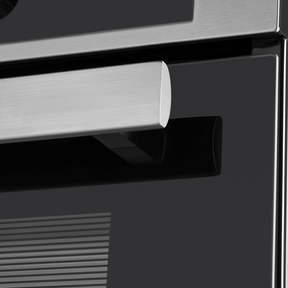 Электрический встраиваемый духовой шкаф с фронтальной панелью из высококачественного жаропрочного тонированного стекла.