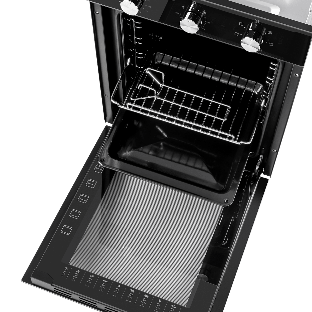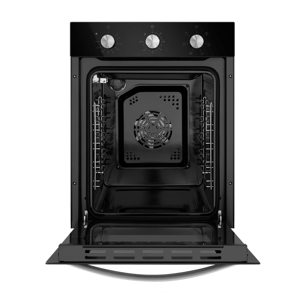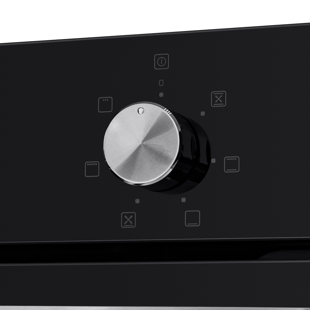 Компактный электрический встраиваемый духовой шкаф с максимальным объемом для своих размеров. Фронтальная панель выполнена из высококачественного жаропрочного тонированного стекла.