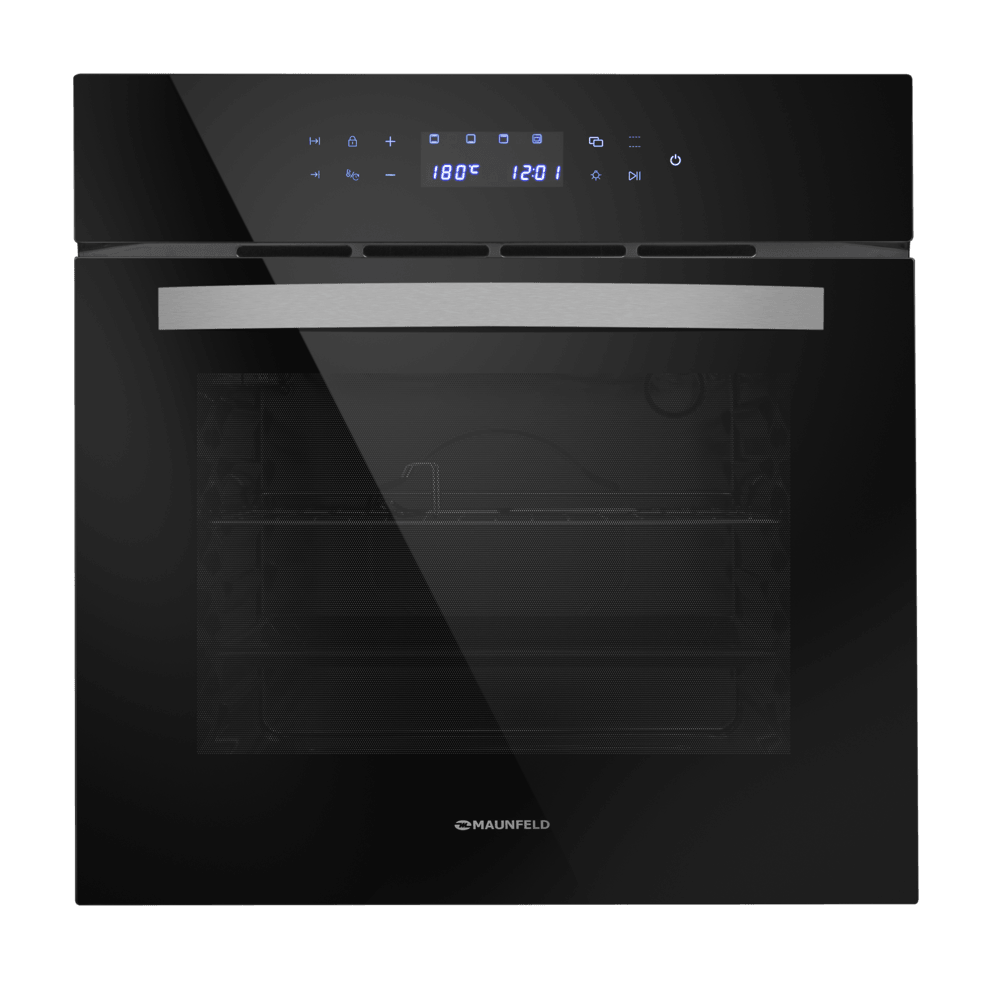 Стильный электрический встраиваемый духовой шкаф с фасадом из высококачественного жаропрочного стекла.