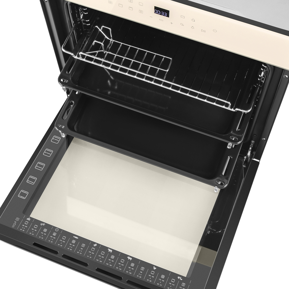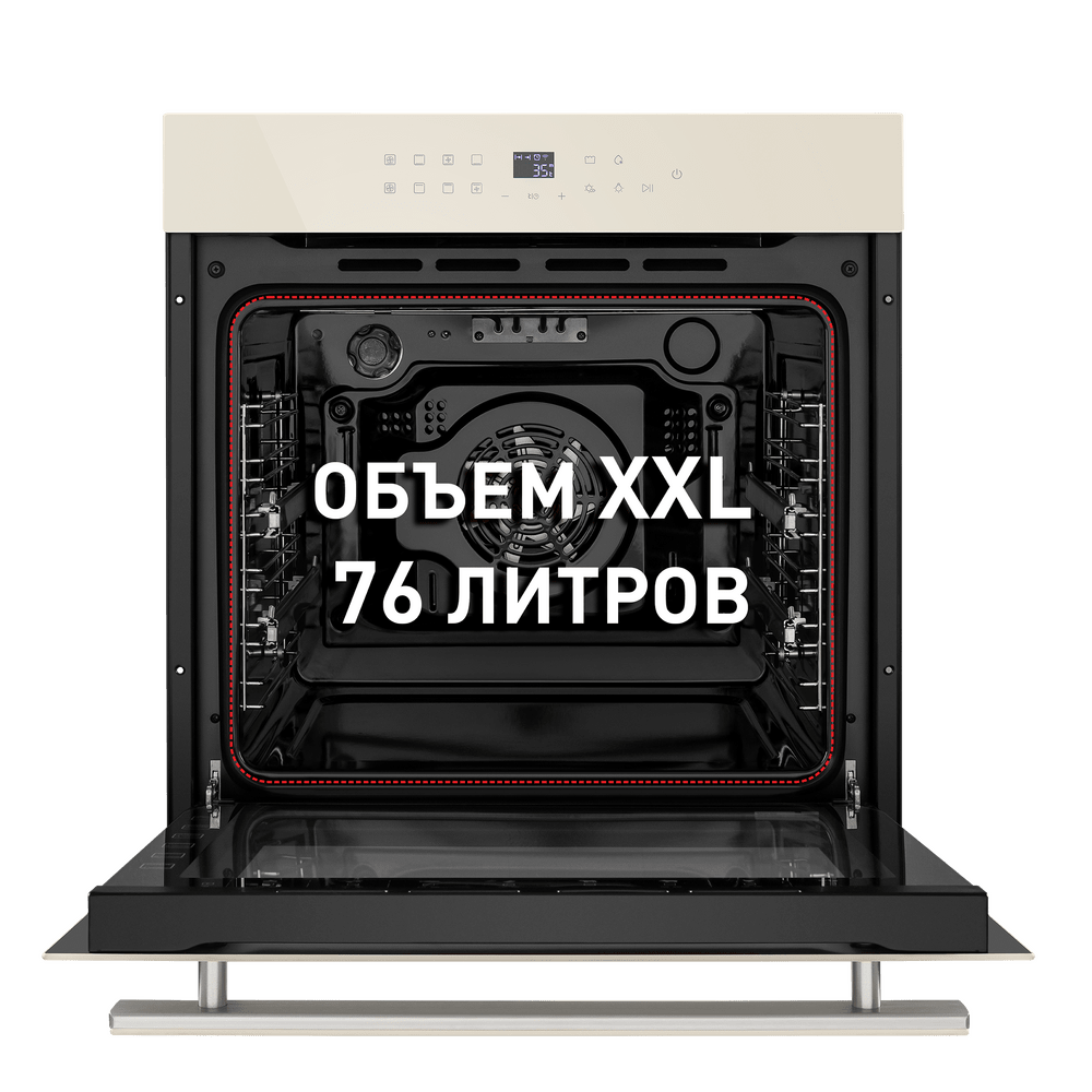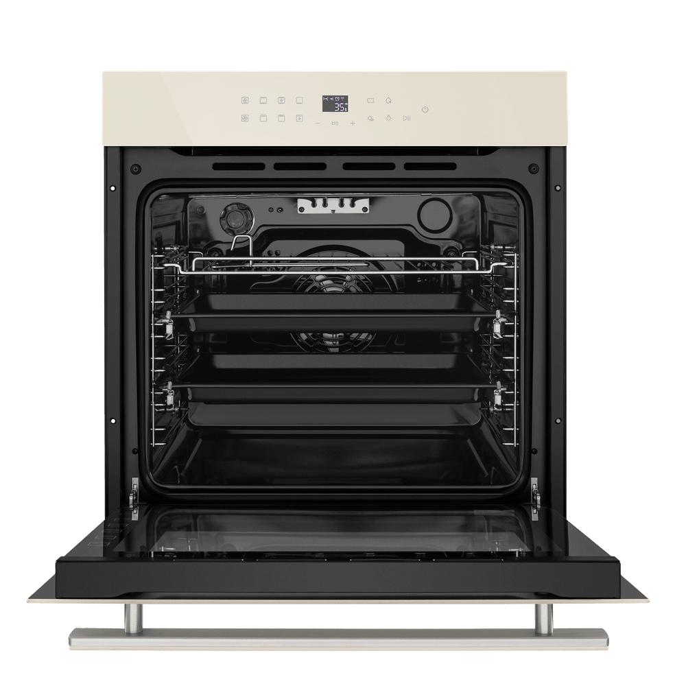 Стильный электрический встраиваемый духовой шкаф с фасадом из высококачественного жаропрочного стекла.