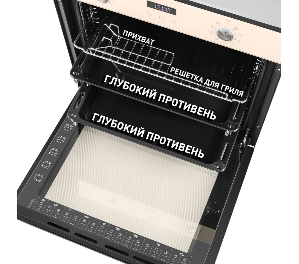 Стильный электрический встраиваемый духовой шкаф и цельнометаллическими ручками PUSH PULL.