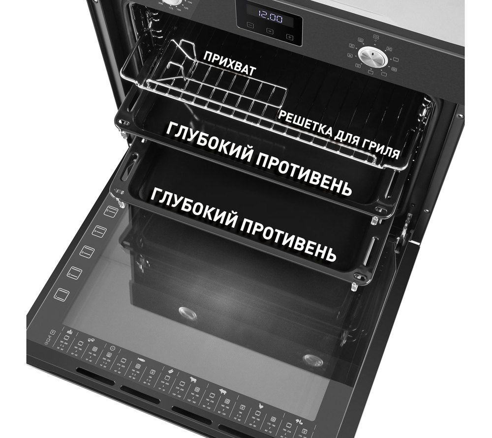 Стильный электрический встраиваемый духовой шкаф и цельнометаллическими ручками PUSH PULL.