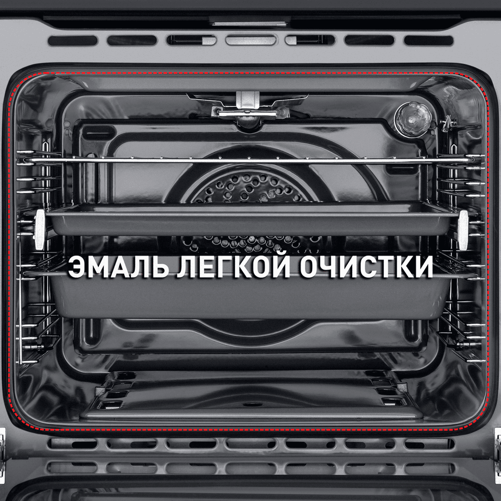 Стильный встраиваемый духовой шкаф с газовым грилем. Фронтальная часть выполнена из высококачественного жаропрочного стекла немецкого производителя SCHOTT.