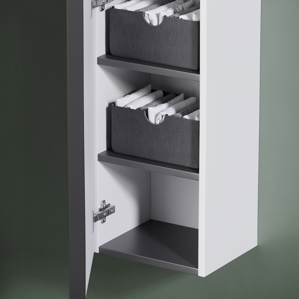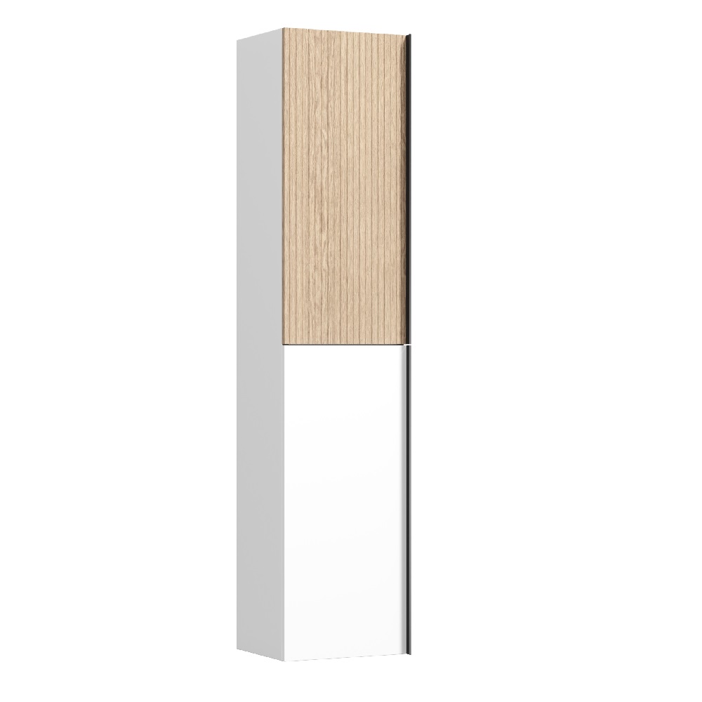 Шкаф-пенал SANCOS Delta подвесной дуб светлый/белый , две дверцы, петли с доводчиками, расположение петель R/L, ручки чёрные профильные накладные 350х300х1600 мм, арт. PDL35W