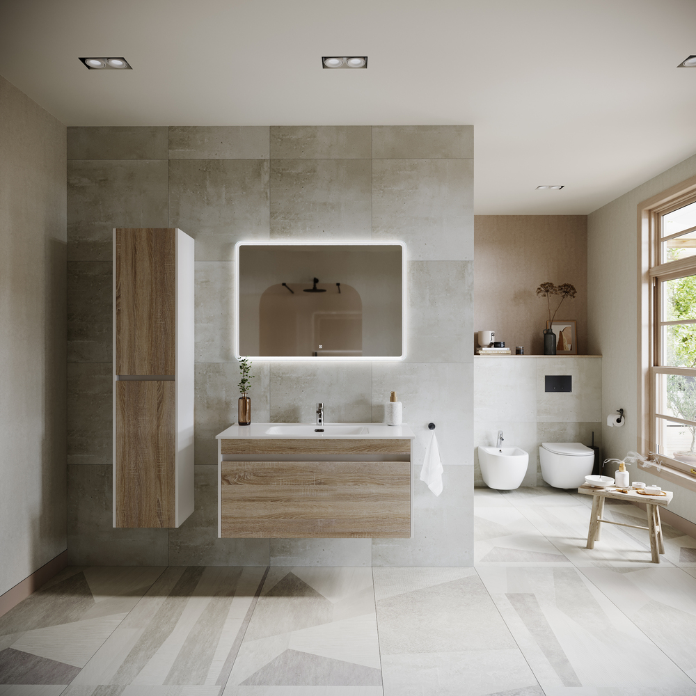 Шкаф-пенал SANCOS Smart подвесной Дуб Бардолино/белый, две дверцы, петли с доводчиками, расположение петель R/L, 350х300х1600 мм, арт. PSM35E