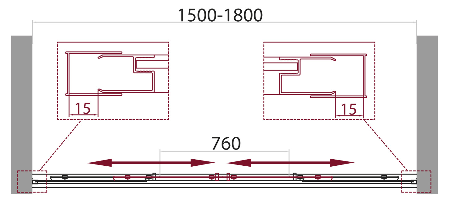Конструкция двери: раздвижная, двойные подшипниковые ролики.