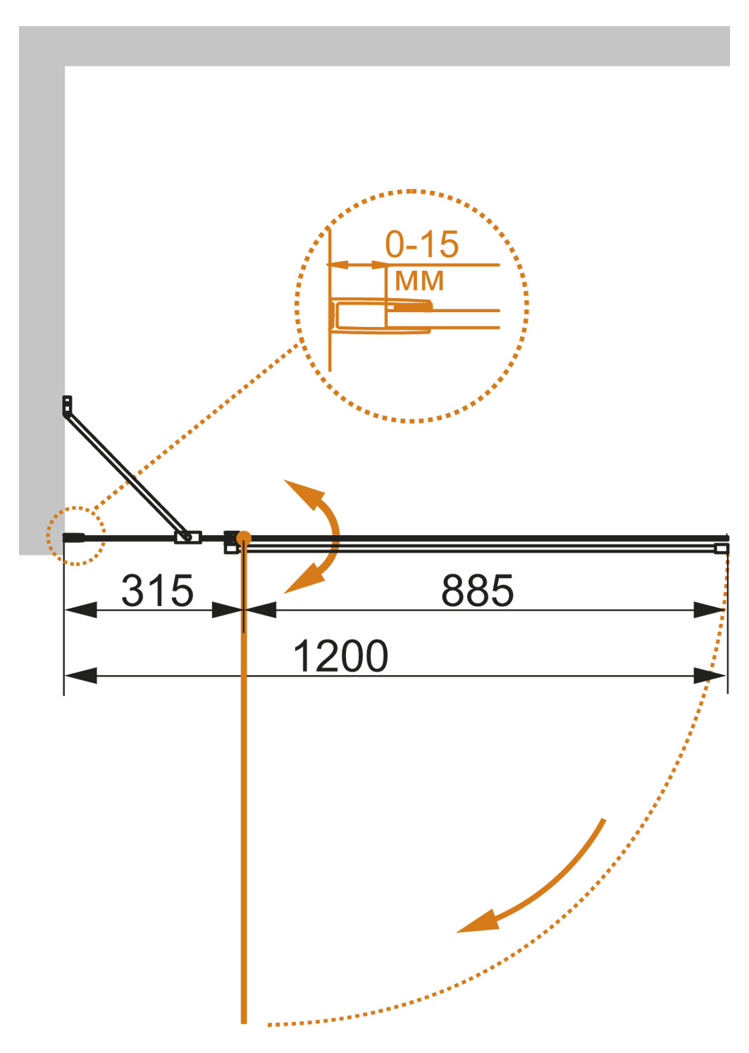 Материал полотна двери: закаленное стекло, стандарт EN12150-1:2000