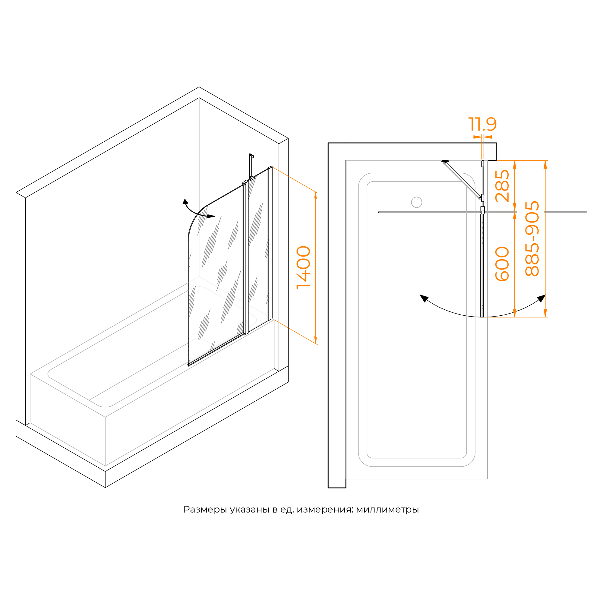 Шторка на ванну RGW SC-011 имеет хромированный профиль, который подчеркивает стиль и эстетическую привлекательность изделия. Ее высота составляет 1400 мм, что делает ее совместимой с большинством типов ванн. Конструкция створки маятниковая, что позволяет открывать ее как внутрь, так и наружу, обеспечивая максимальную удобство использования.