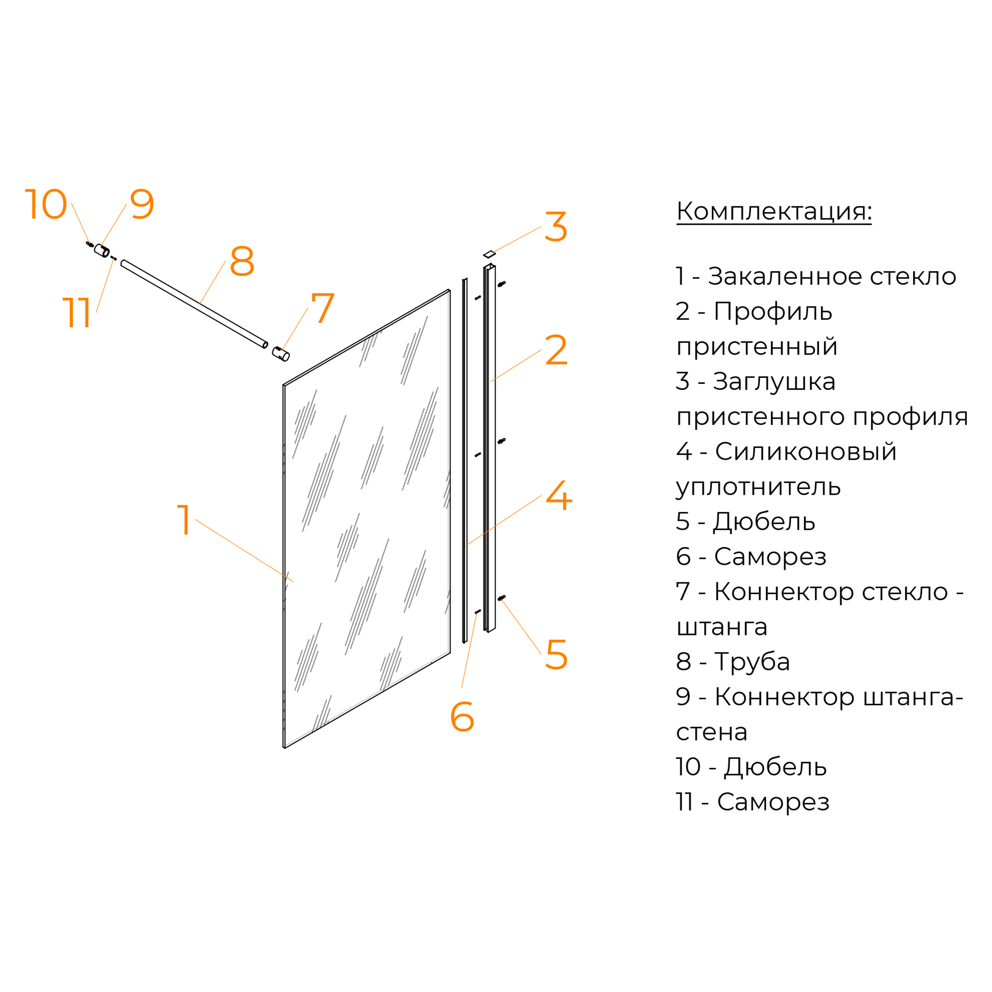 Толщина стекла шторки составляет 6 мм, что является оптимальной толщиной для такого типа продукции. Такое стекло надежно и долговечно.