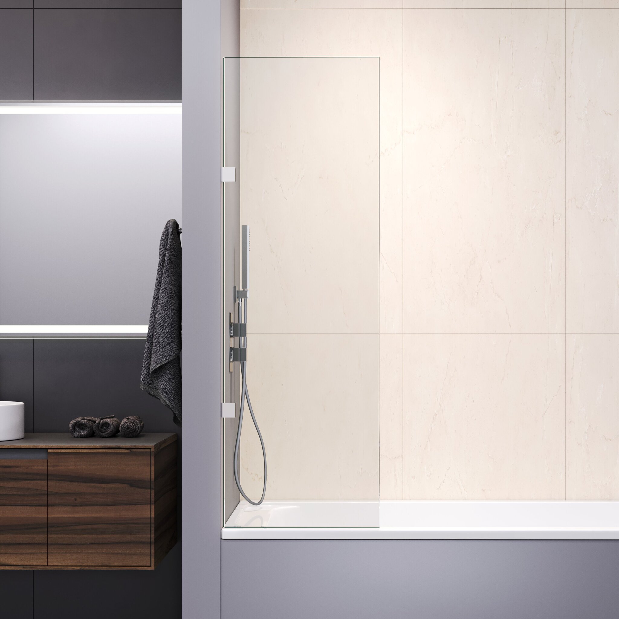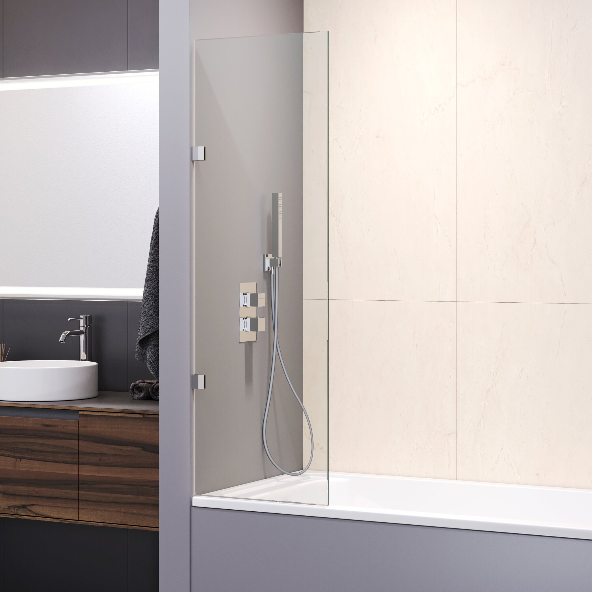 Стекло, использованное в этой модели, прозрачное, что добавляет еще больше легкости и простора в вашу ванную комнату. Стекло не только красивое, но и функциональное: покрытие Easy Clean облегчает уход за поверхностью, предотвращая скопление пыли и грязи. Это особенно удобно для тех, кто не любит тратить время на уборку в ванной.