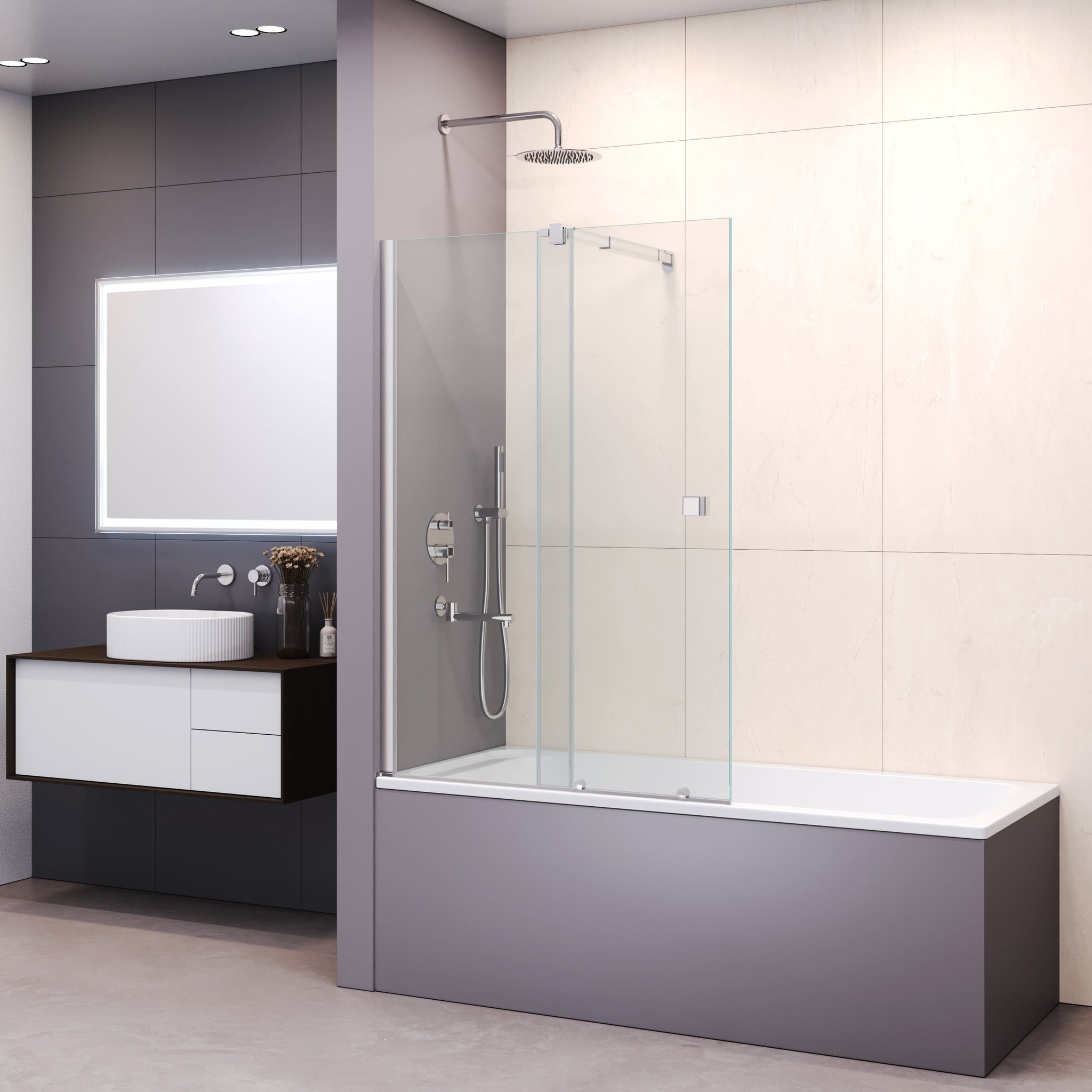 Стеклянная перегородка на борт ванны с механизмом движения стеклянных полотен «Sliding wall» (в переводе «Выдвижная стена») от компании RGW «Стильные Душевые» разработана для классических прямоугольных ванн, монтаж на борт ванны.