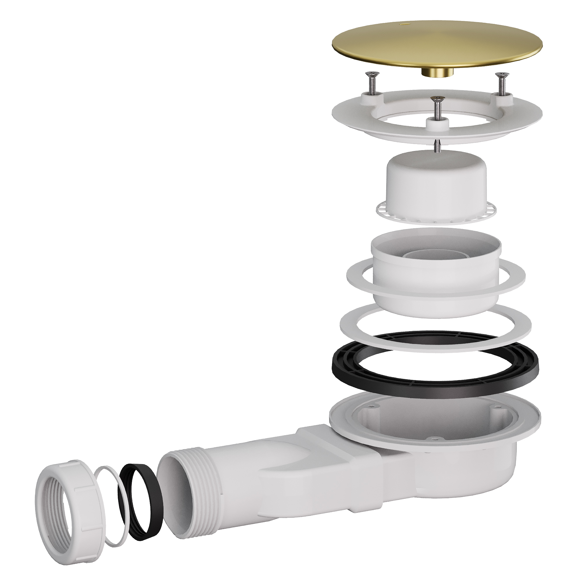 Высокая пропускная способность сифона 38 л/мин. обеспечивает быстрый сток воды, что позволяет компенсировать отсутствие глубокой купели в поддоне.