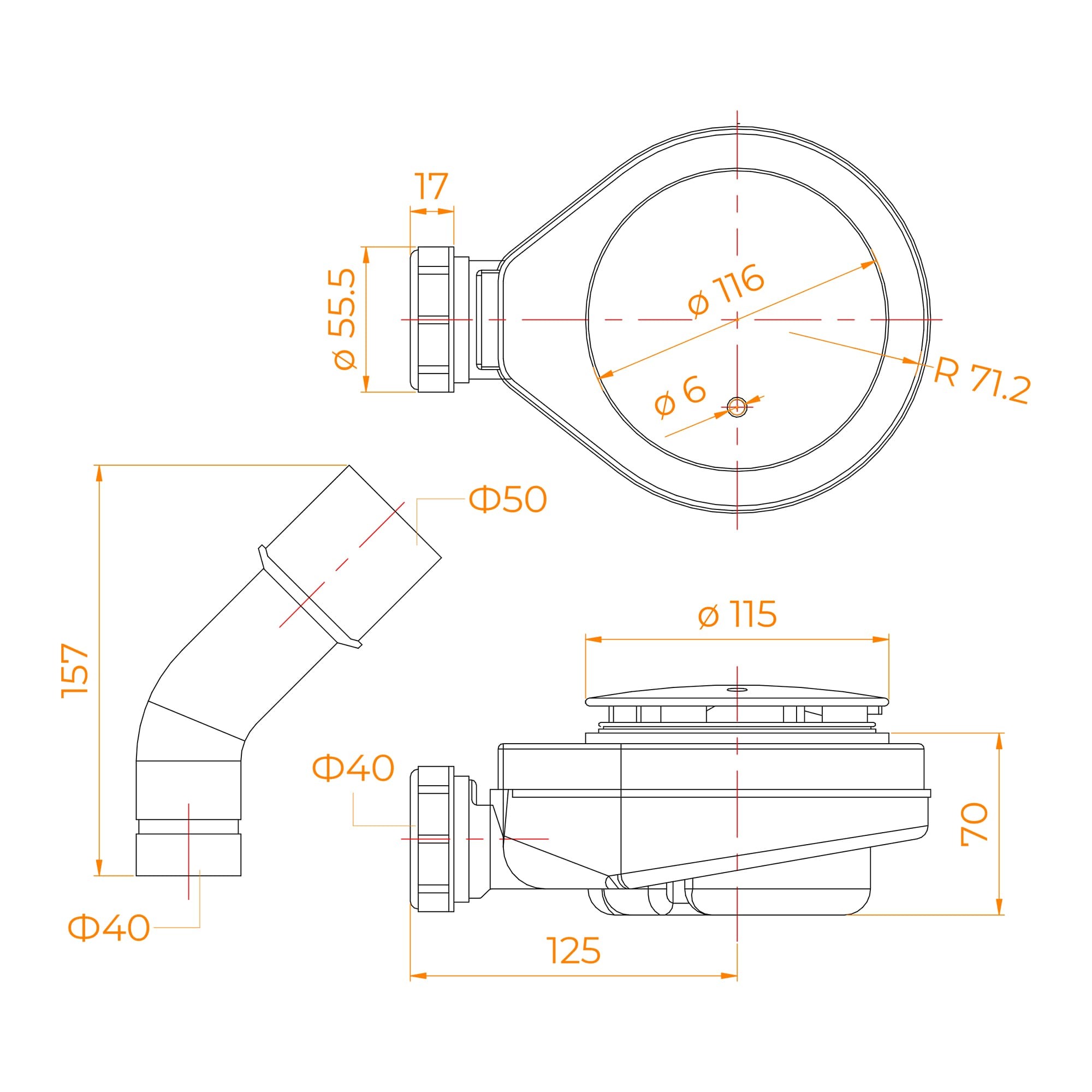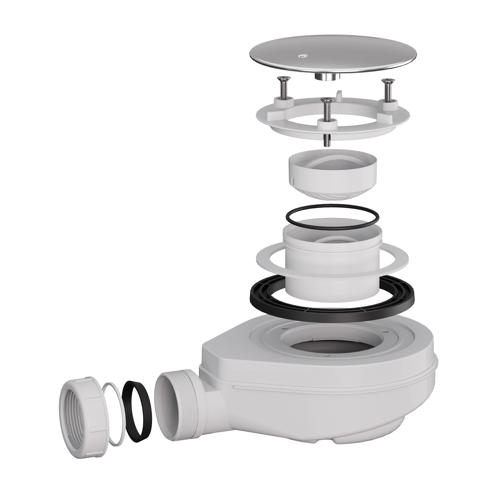 Высокая пропускная способность сифона 40 л/мин. обеспечивает быстрый сток воды, что позволяет компенсировать отсутствие глубокой купели в поддоне.