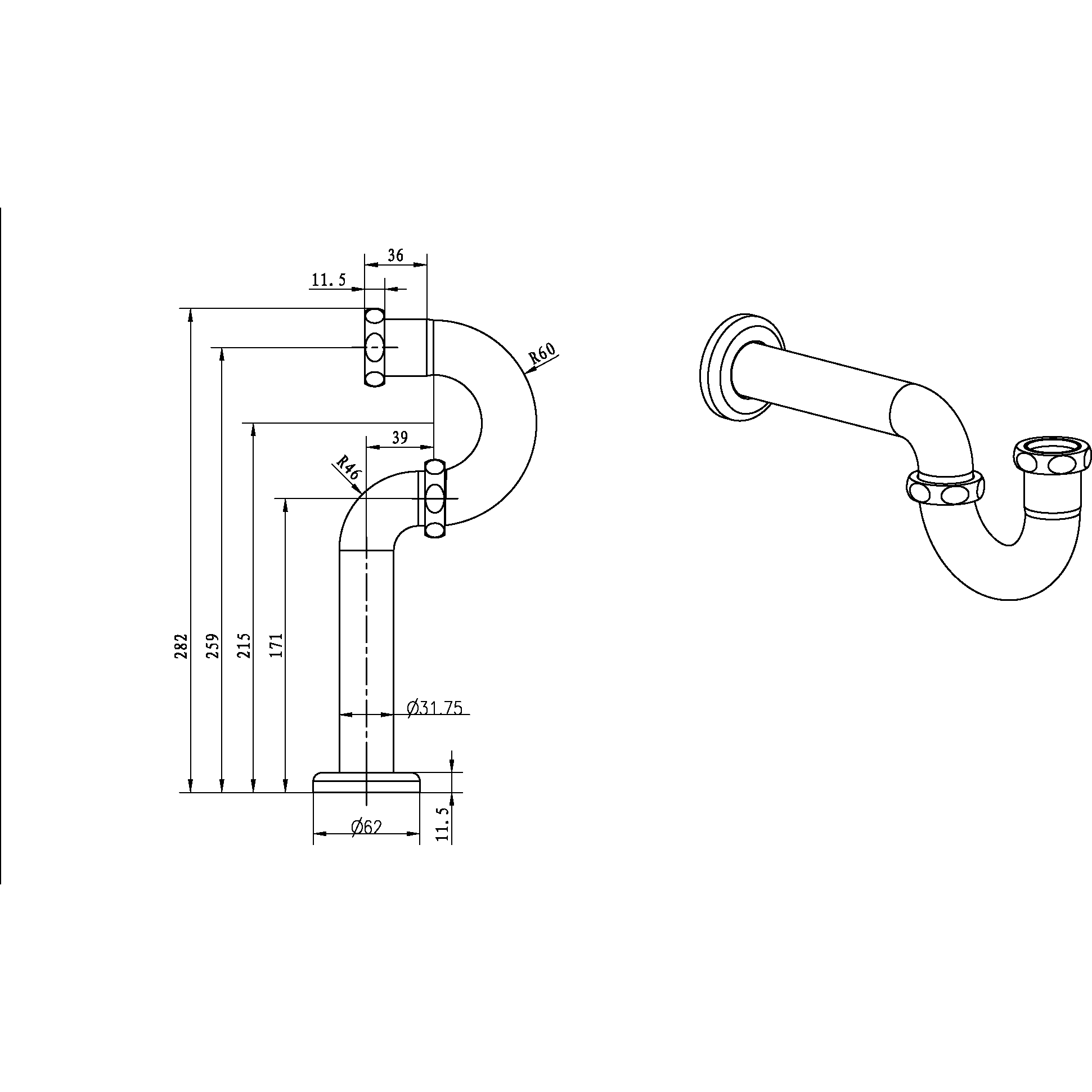 - Трубный сифон предполагает изогнутую форму трубы, нижнее колено снимается для очистки