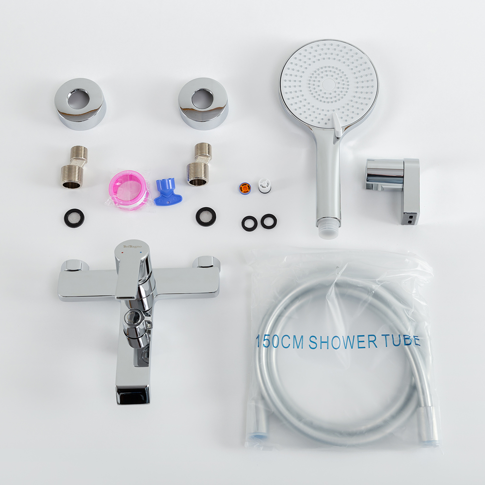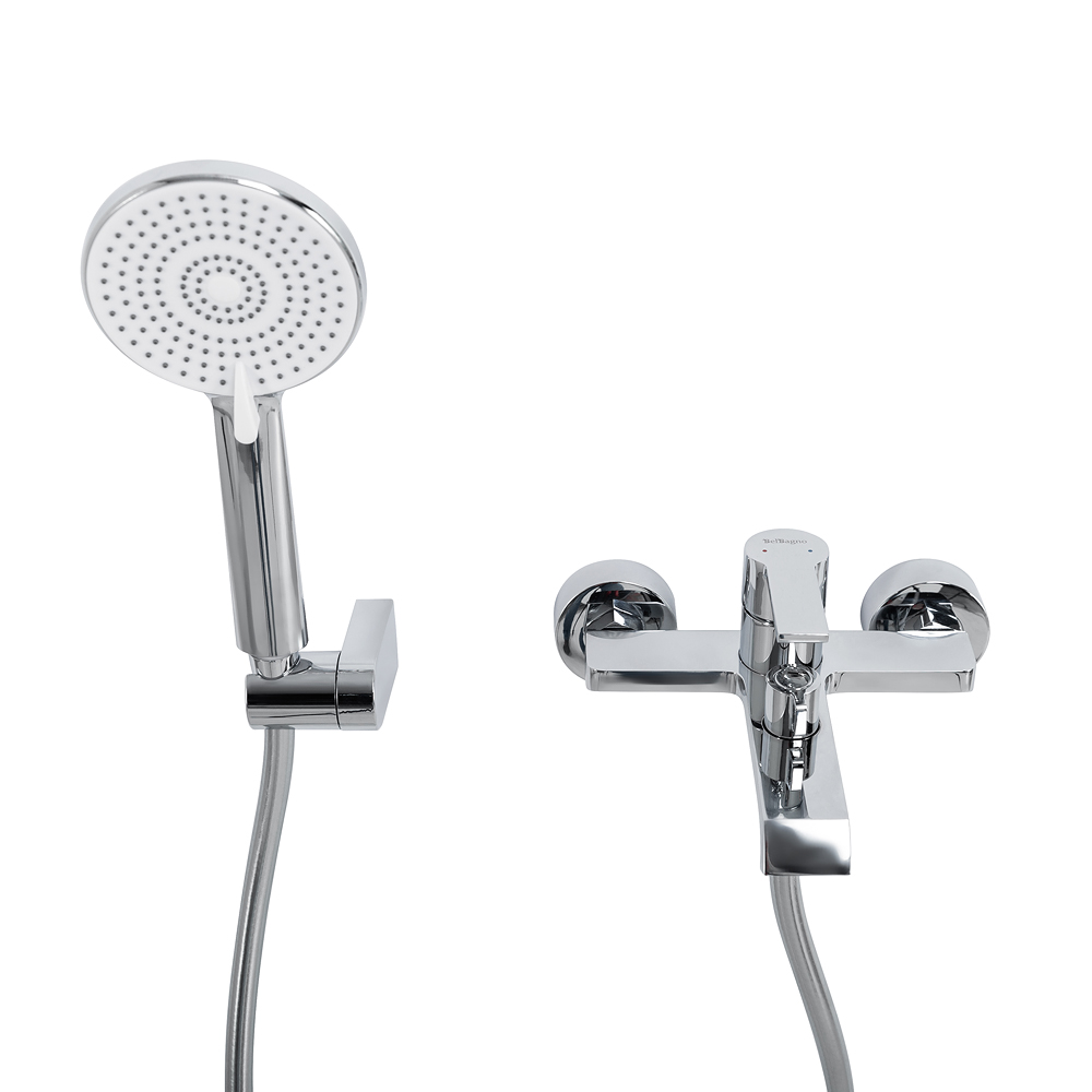 Оснащение: душевой шланг ПВХ, душевая лейка 3-х режимная из ABS, настенный держатель ручного душа, смеситель