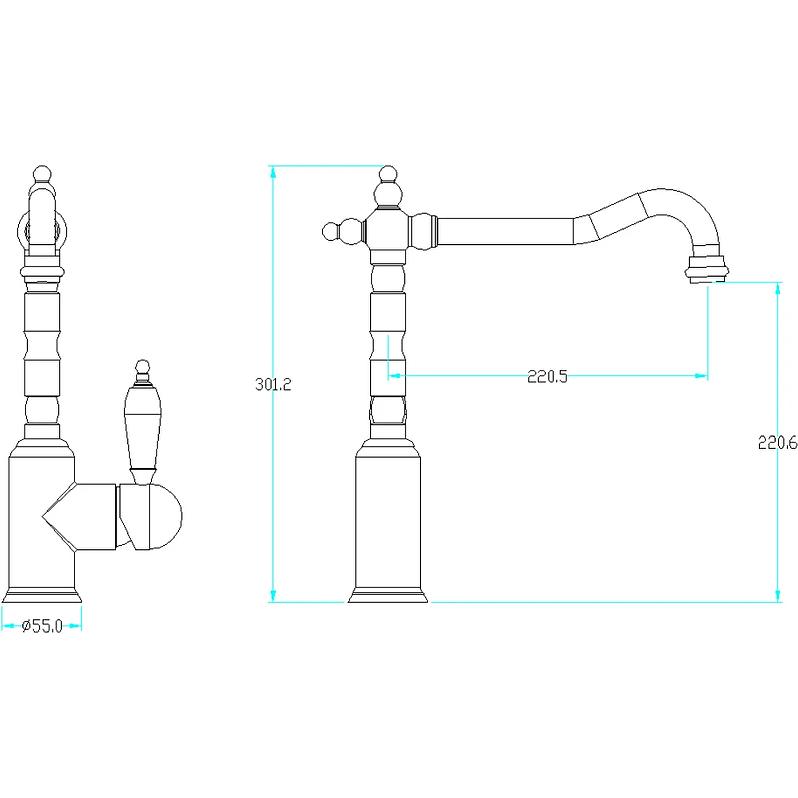 Смеситель для кухни Boheme Tradizionale CHROMO 103-BLC Хром, черная керамика