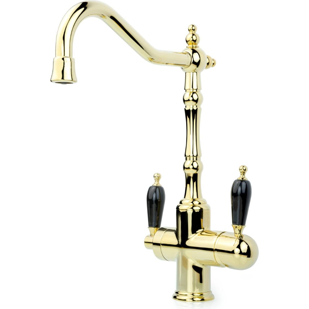 Смеситель для кухни Boheme TRADIZIONALE ORO 112-BLC Золото, с черной керамикой