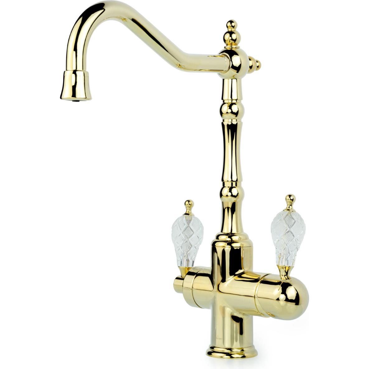 Смеситель Medici Ripresa порадует поклонников интерьеров в ретростиле. Изящная модель изготовлена из латуни с износостойким покрытием PVD бронзового цвета, сохраняющим приятное сияние на протяжении всего периода эксплуатации. Подключается к фильтру и обеспечивает подачу очищенной воды через дополнительный канал в поворотном изливе. Управление потоками осуществляется 2 рычагами. Устройство герметично и рассчитано на долгий срок службы.
