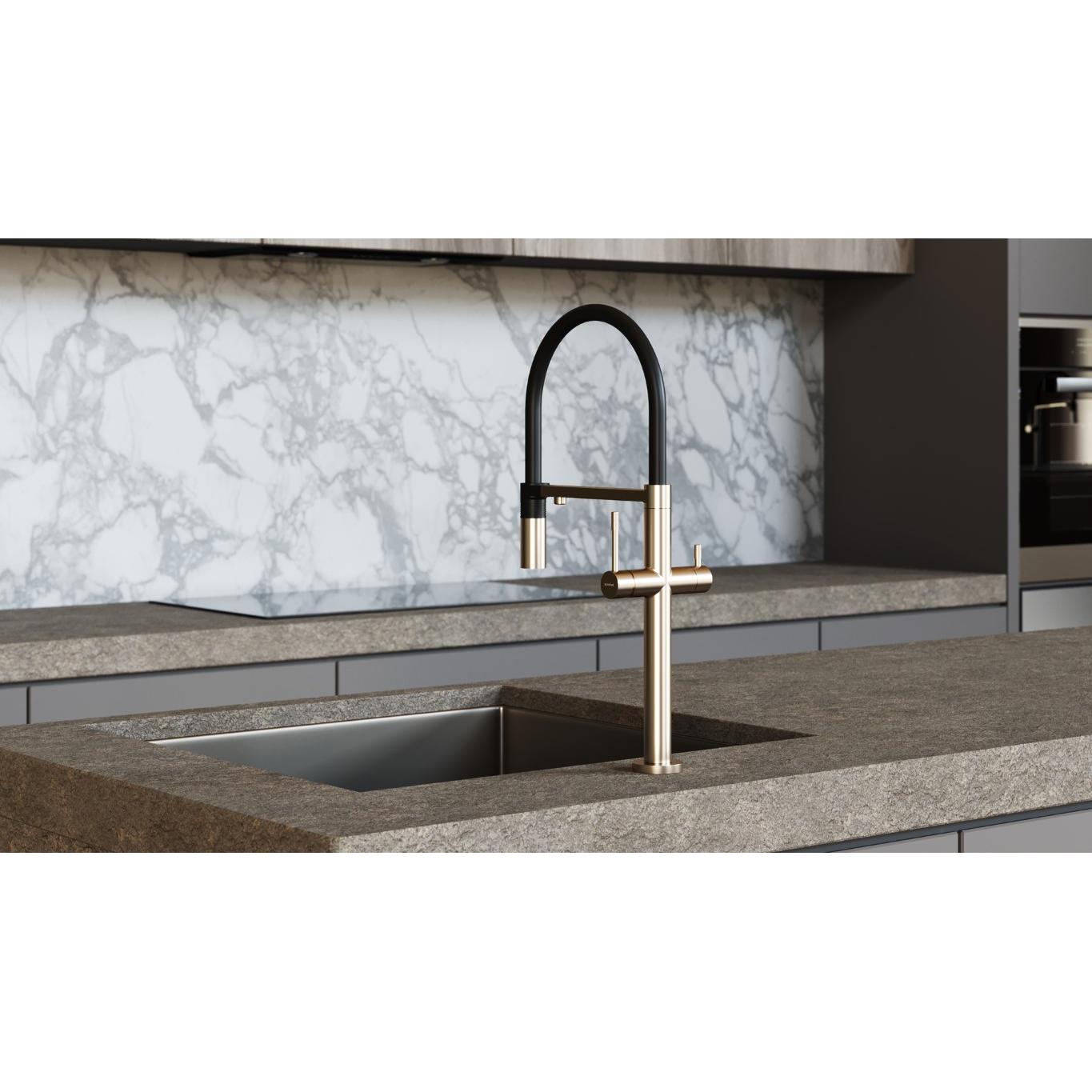 - Смеситель имеет совмещенный излив для фильтрованной воды