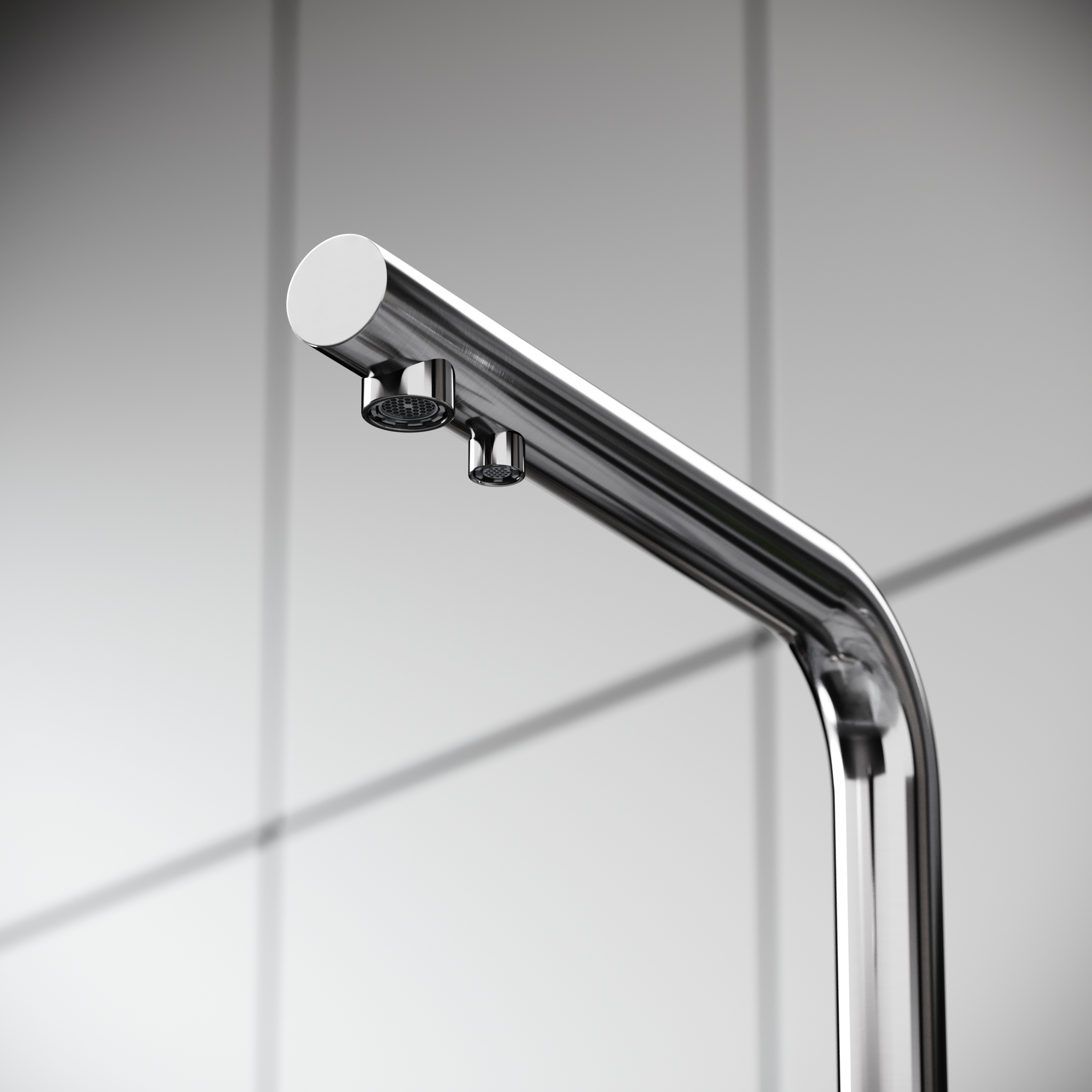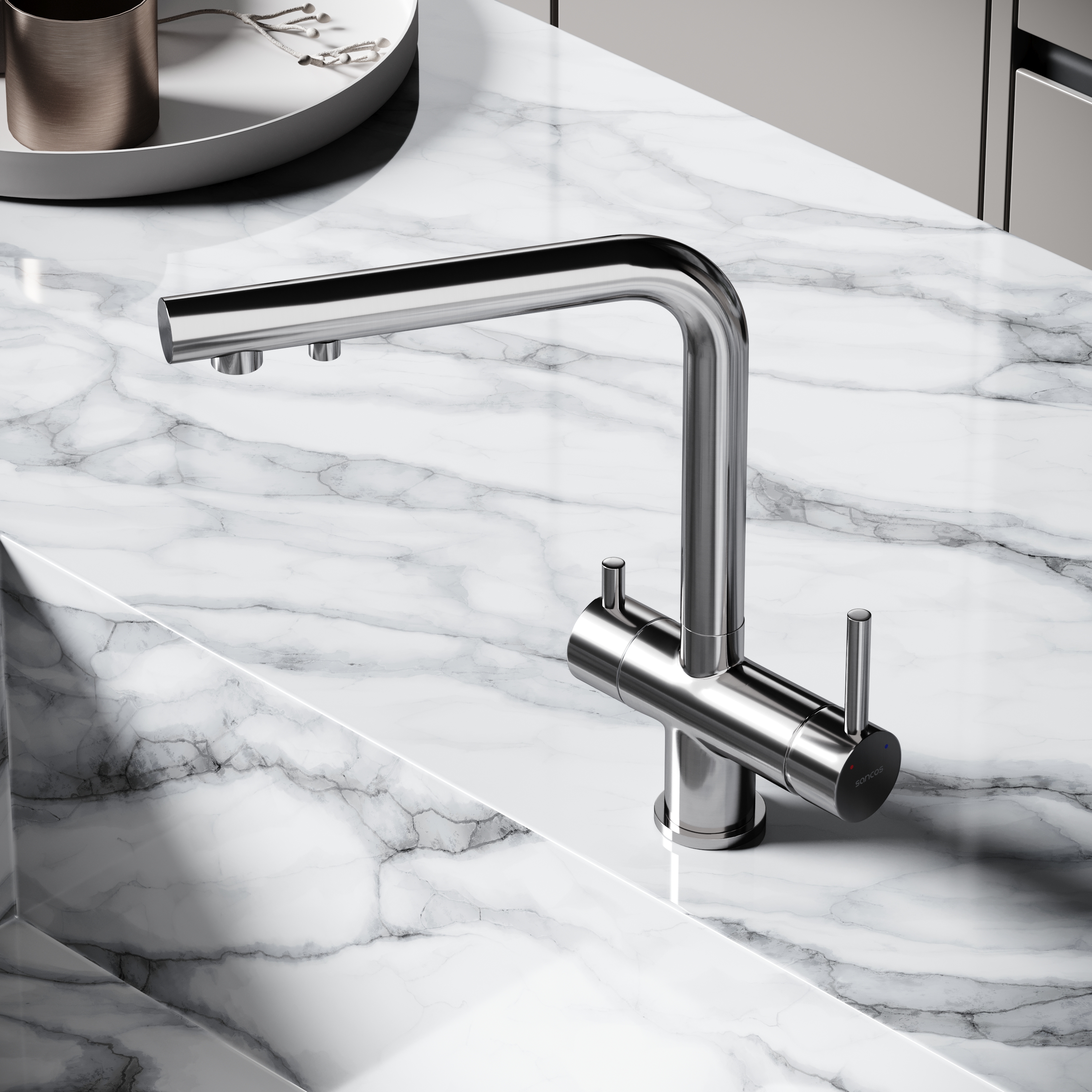 В комплекте: смеситель, комплект для подключения к фильтру, подводка для воды, монтажный комплект