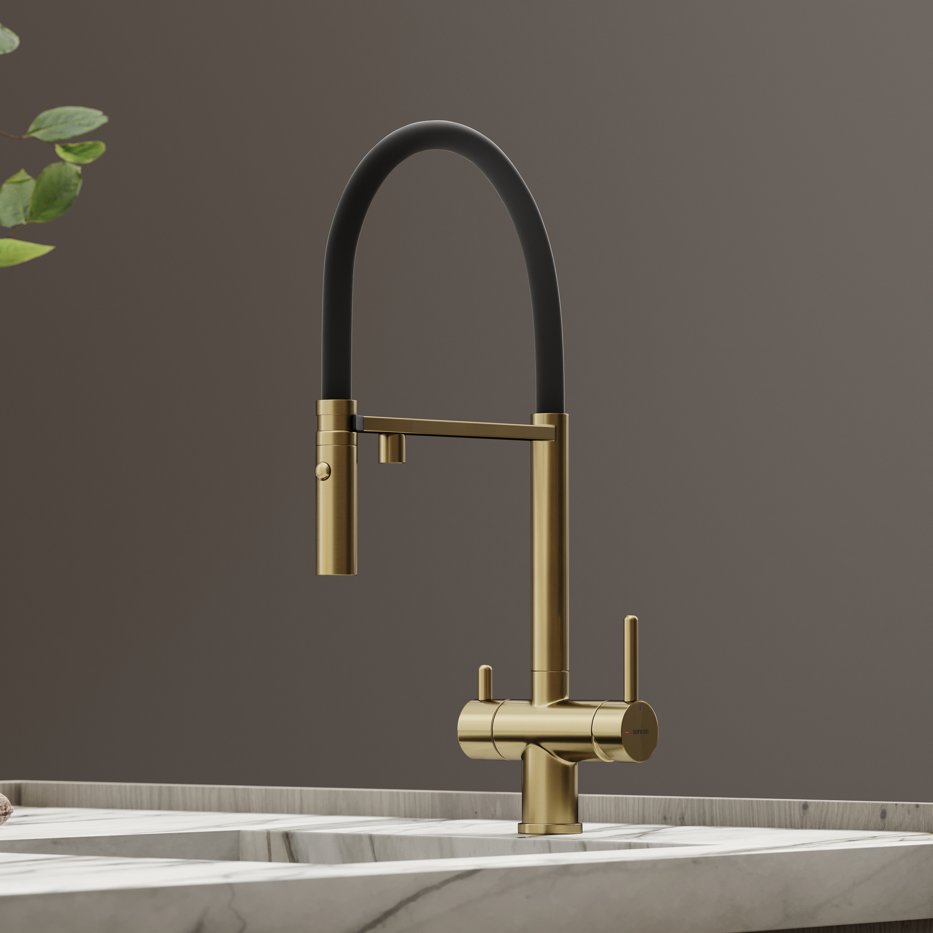 - Излив для фильтрованной воды интегрирован в держатель основного излива