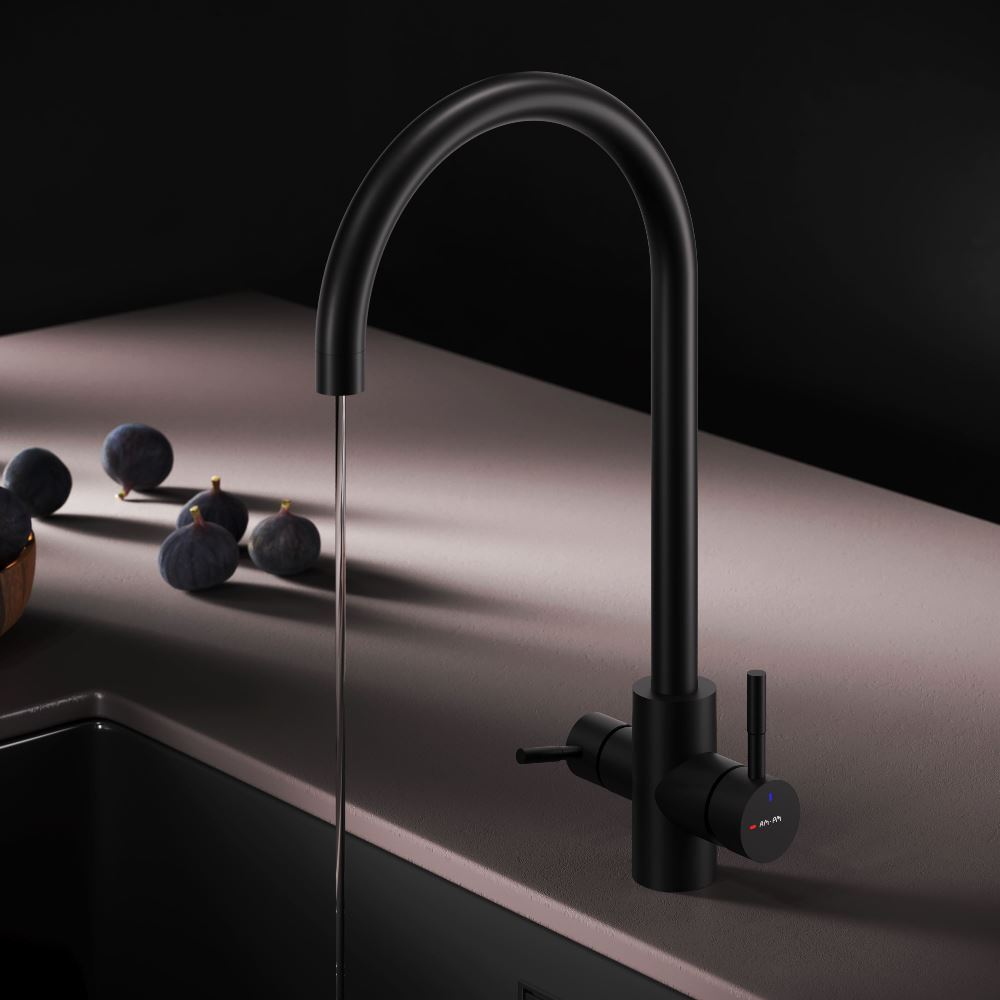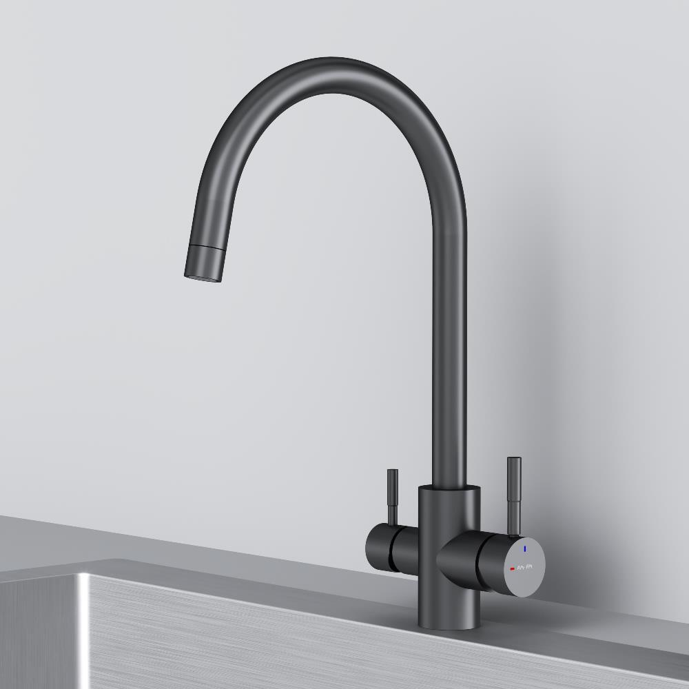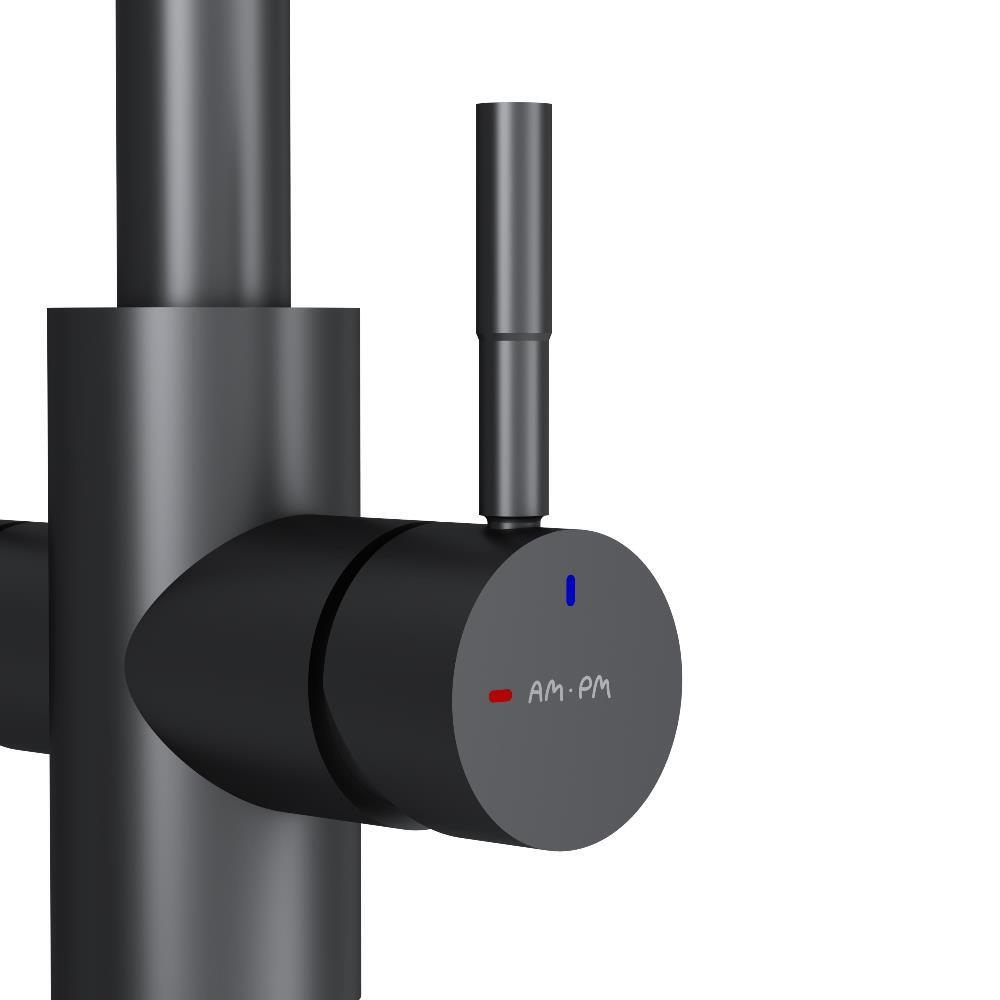 Встречайте пополнение экстраординарной коллекции X-Joy S – кухонные смесители с каналом для питьевой воды и функцией EcoStart. Эргономичный дизайн продуктов был разработан собственной дизайн-студией AM.PM в Германии. Смеситель оснащен встроенным каналом для питьевой воды. Для получения питьевой воды воспользуйтесь ручкой расположенной с левой стороны корпуса для получения обычной воды просто управляйте смесителем привычным способом. Функция EcoStart —стильное и экологичное решение для вашего дома. При включении смесителя в центральном положении автоматически потечет холодная вода. Для включения горячей воды – необходимо повернуть ручку влево. Поворот ручки вправо заблокирован. Оптимизация диапазона действия ручки смесителя сокращает нерациональный расход воды до 40% в месяц. EcoStart сочетает удобство использования с экономией ресурсов заботясь не только о вашем бюджете но и об окружающей среде. Эксклюзивное покрытие Everlast – вдвое превышает отраслевые стандарты по прочности и износостойкости. Черный матовый цвет сделает этот смеситель главным акцентом в любом интерьере. ""