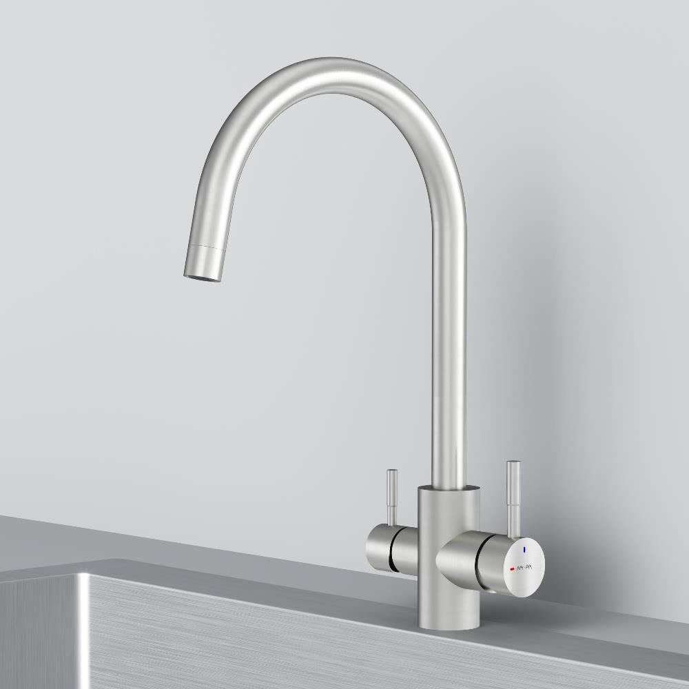 Встречайте пополнение экстраординарной коллекции X-Joy S – кухонные смесители с каналом для питьевой воды и функцией EcoStart. Эргономичный дизайн продуктов был разработан собственной дизайн-студией AM.PM в Германии. Смеситель оснащен встроенным каналом для питьевой воды. Для получения питьевой воды воспользуйтесь ручкой расположенной с левой стороны корпуса для получения обычной воды просто управляйте смесителем привычным способом. Функция EcoStart —стильное и экологичное решение для вашего дома. При включении смесителя в центральном положении автоматически потечет холодная вода. Для включения горячей воды – необходимо повернуть ручку влево. Поворот ручки вправо заблокирован. Оптимизация диапазона действия ручки смесителя сокращает нерациональный расход воды до 40% в месяц. EcoStart сочетает удобство использования с экономией ресурсов заботясь не только о вашем бюджете но и об окружающей среде. Эксклюзивное покрытие Everlast – вдвое превышает отраслевые стандарты по прочности и износостойкости. Сатиновый цвет сделает этот смеситель главным акцентом в любом интерьере. ""
