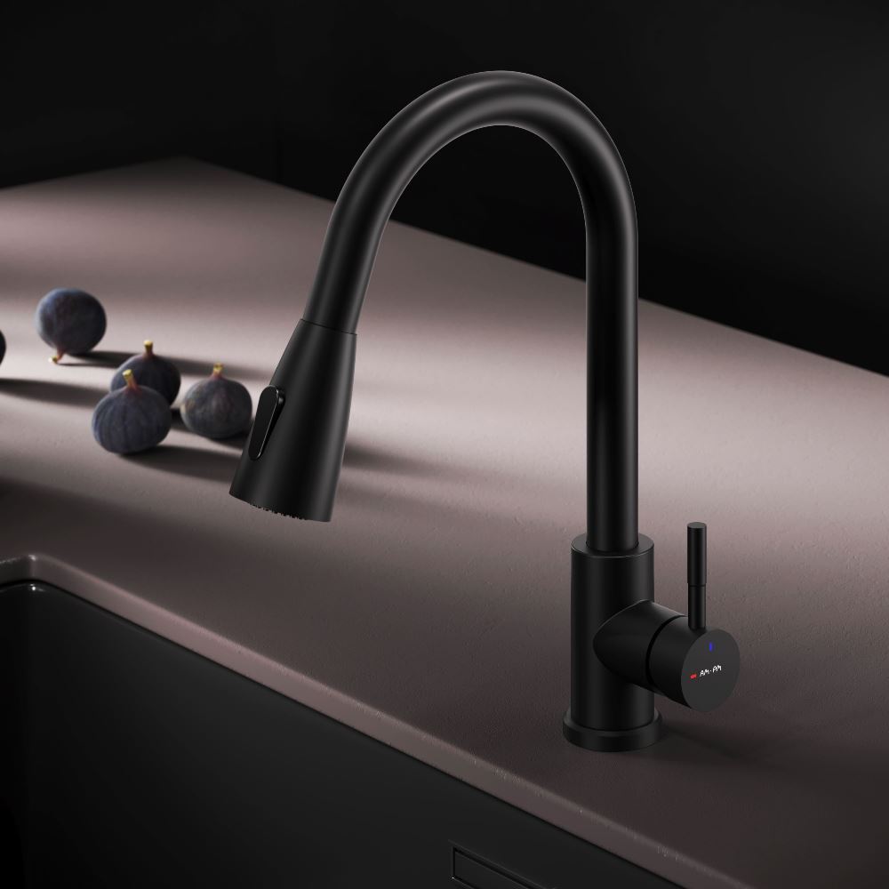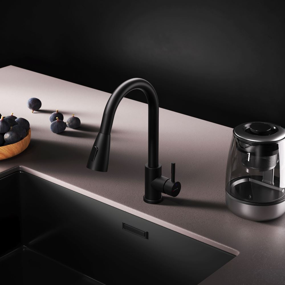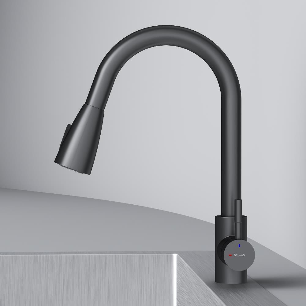 Встречайте пополнение экстраординарной коллекции X-Joy S – кухонные смесители с вытяжным изливом и инновационной функцией экономии воды. Экстраординарный дизайн смесителя был разработан ведущими дизайнерами бренда в Германии. Смеситель оборудован вытяжным гибким изливом который позволит с легкостью справится с такими задачами как мытье раковины наполнение больших емкостей и мытье овощей и фруктов. В зависимости от задачи вы можете легко переключаться между обычным потоком воды и режимом «душ». Функция EcoStart —стильное и экологичное решение для вашего дома. При включении смесителя в центральном положении автоматически потечет холодная вода. Для включения горячей воды – необходимо повернуть ручку влево. Поворот ручки вправо заблокирован. Оптимизация диапазона действия ручки смесителя сокращает нерациональный расход воды до 40% в месяц. EcoStart сочетает удобство использования с экономией ресурсов заботясь не только о вашем бюджете но и об окружающей среде. Эксклюзивное покрытие Everlast – вдвое превышает отраслевые стандарты по прочности и износостойкости. Черный матовый цвет сделает этот смеситель главным акцентом в любом интерьере. ""