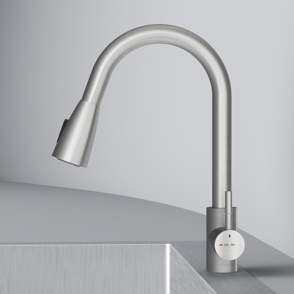 Встречайте пополнение экстраординарной коллекции X-Joy S – кухонные смесители с вытяжным изливом и инновационной функцией экономии воды. Экстраординарный дизайн смесителя был разработан ведущими дизайнерами бренда в Германии. Смеситель оборудован вытяжным гибким изливом который позволит с легкостью справится с такими задачами как мытье раковины наполнение больших емкостей и мытье овощей и фруктов. В зависимости от задачи вы можете легко переключаться между обычным потоком воды и режимом «душ». Функция EcoStart —стильное и экологичное решение для вашего дома. При включении смесителя в центральном положении автоматически потечет холодная вода. Для включения горячей воды – необходимо повернуть ручку влево. Поворот ручки вправо заблокирован. Оптимизация диапазона действия ручки смесителя сокращает нерациональный расход воды до 40% в месяц. EcoStart сочетает удобство использования с экономией ресурсов заботясь не только о вашем бюджете но и об окружающей среде. Эксклюзивное покрытие Everlast – вдвое превышает отраслевые стандарты по прочности и износостойкости. Сатиновый цвет сделает этот смеситель главным акцентом в любом интерьере. ""