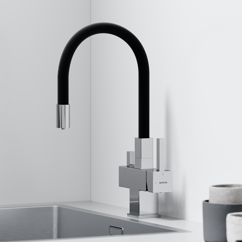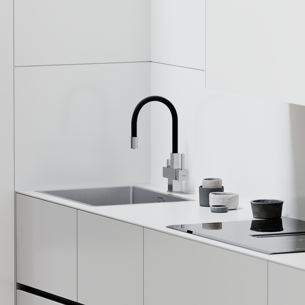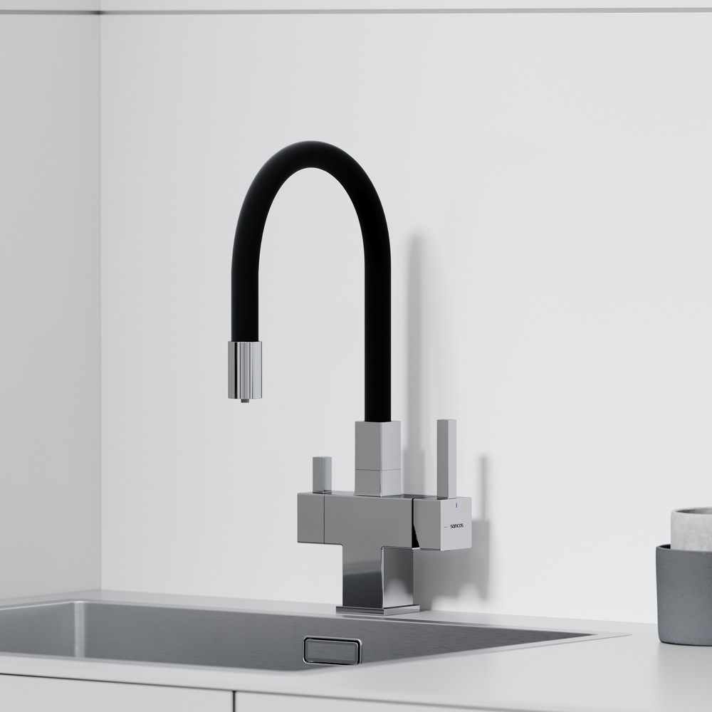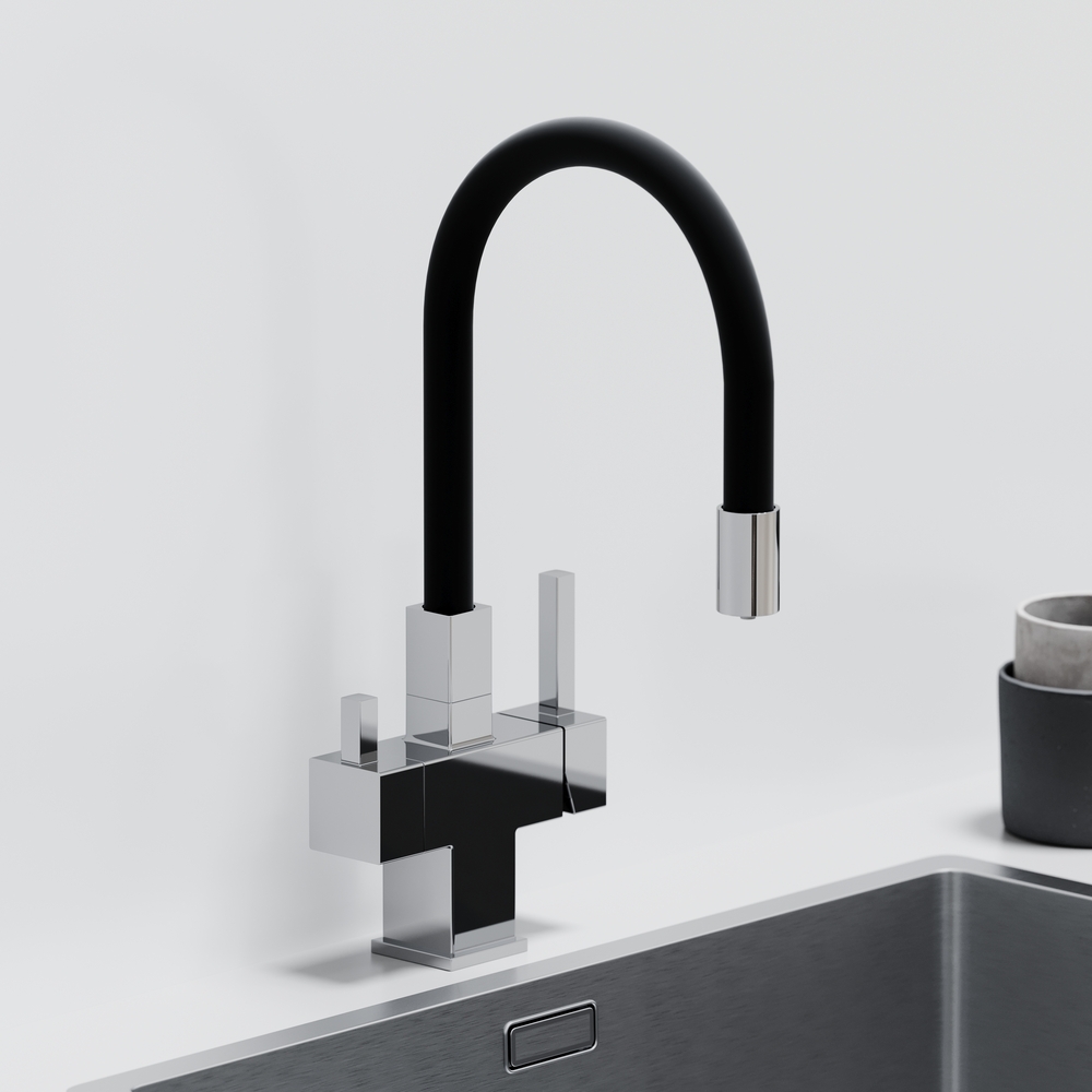- Функция «Холодный старт». Для включения и регулировки воды нужно отклонить ручку смесителя вправо и повернуть ее на себя. Ход ручки вниз на 90° настраивает максимальную температуру