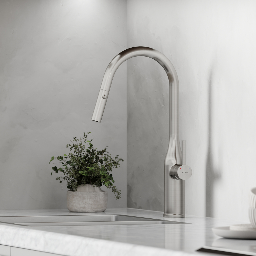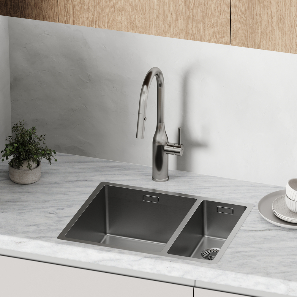 - 2 режима потока воды (душ и стандартная струя) переключаются кнопкой на изливе