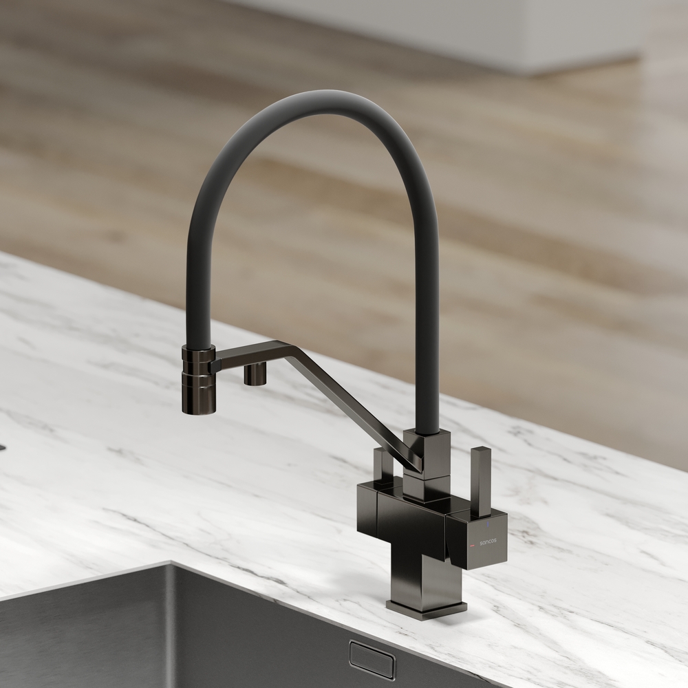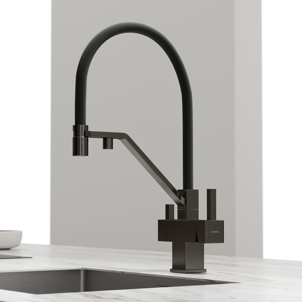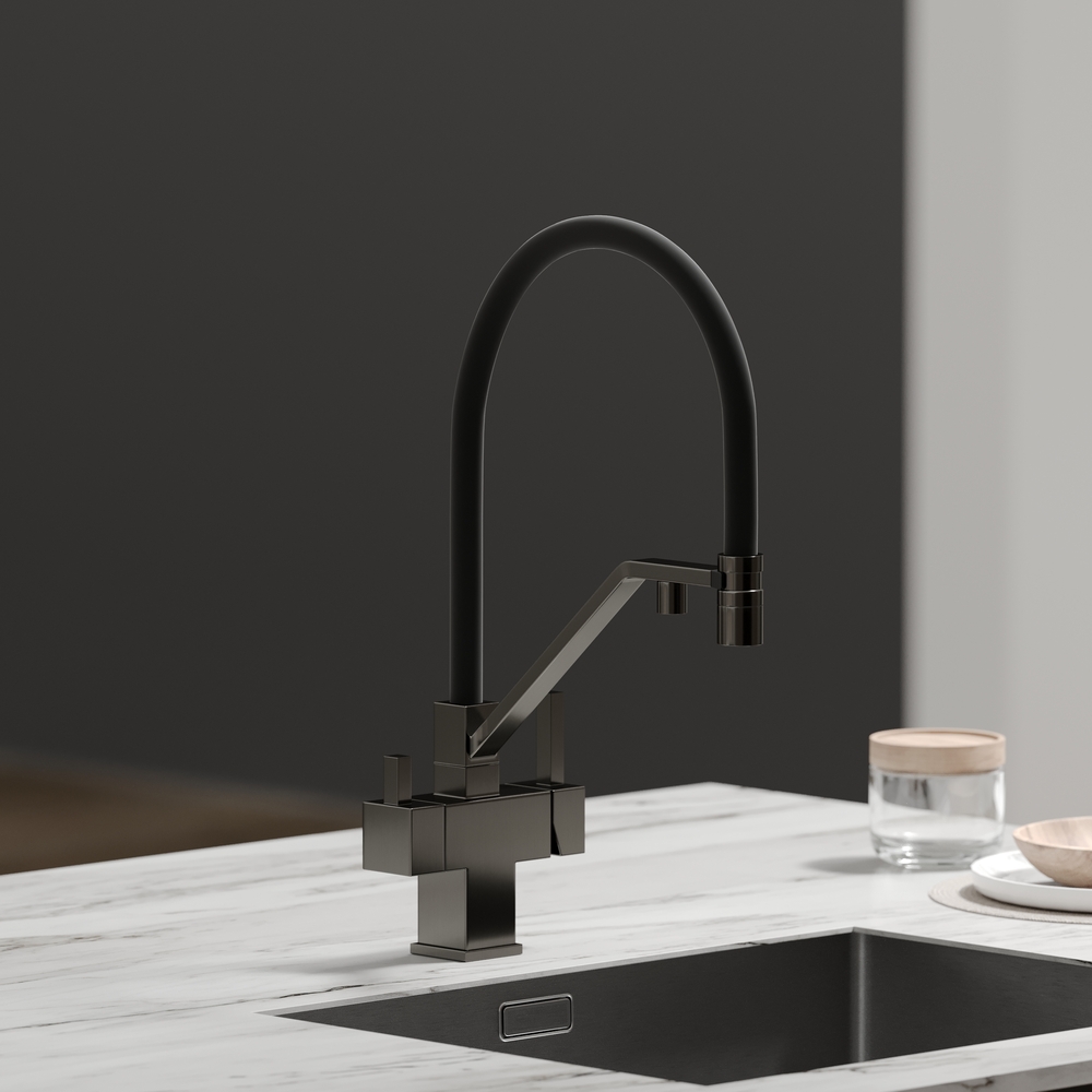 - Излив для фильтрованной воды интегрирован в держатель основного излива