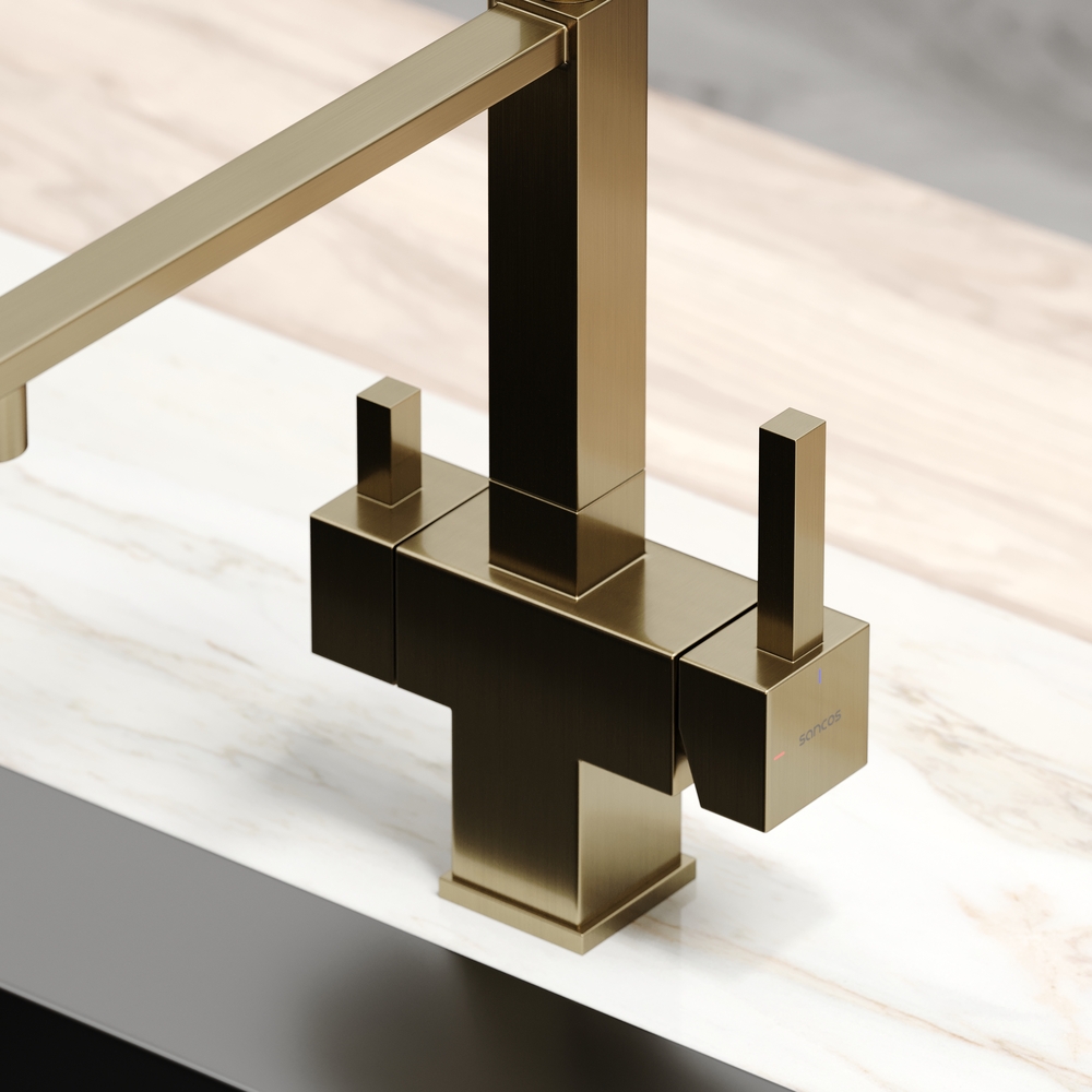 - Излив для фильтрованной воды интегрирован в держатель основного излива Магнитный держатель излива
