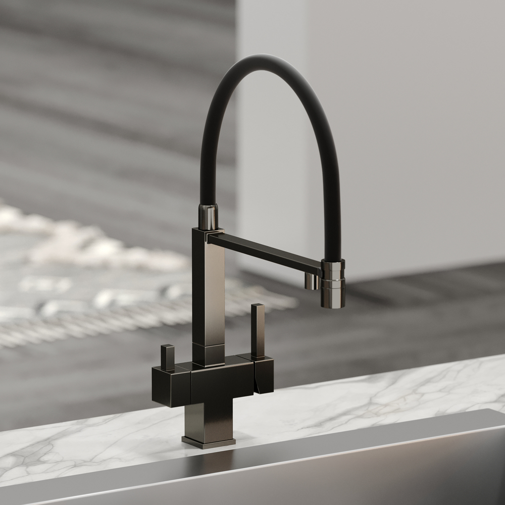 - Излив для фильтрованной воды интегрирован в держатель основного излива Магнитный держатель излива