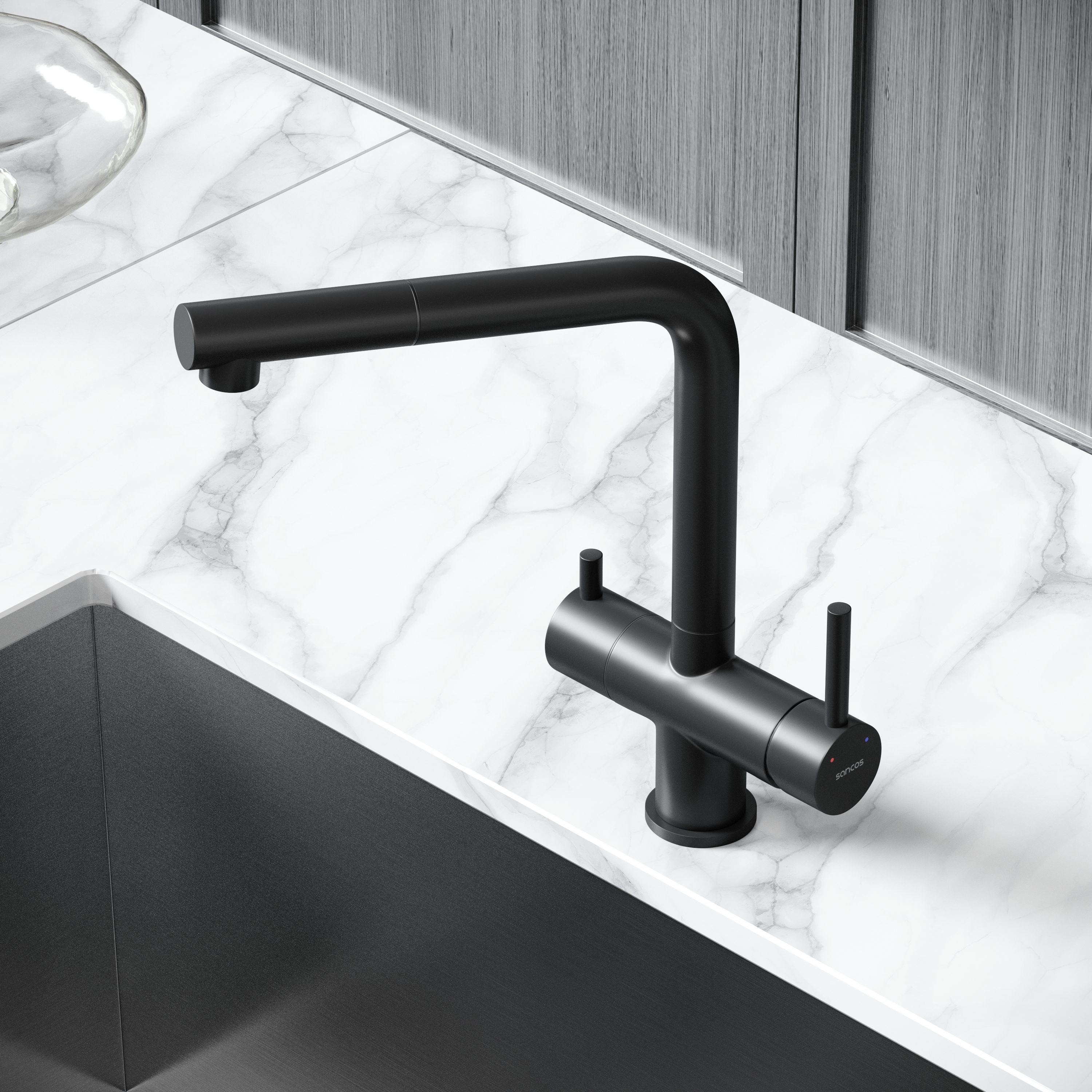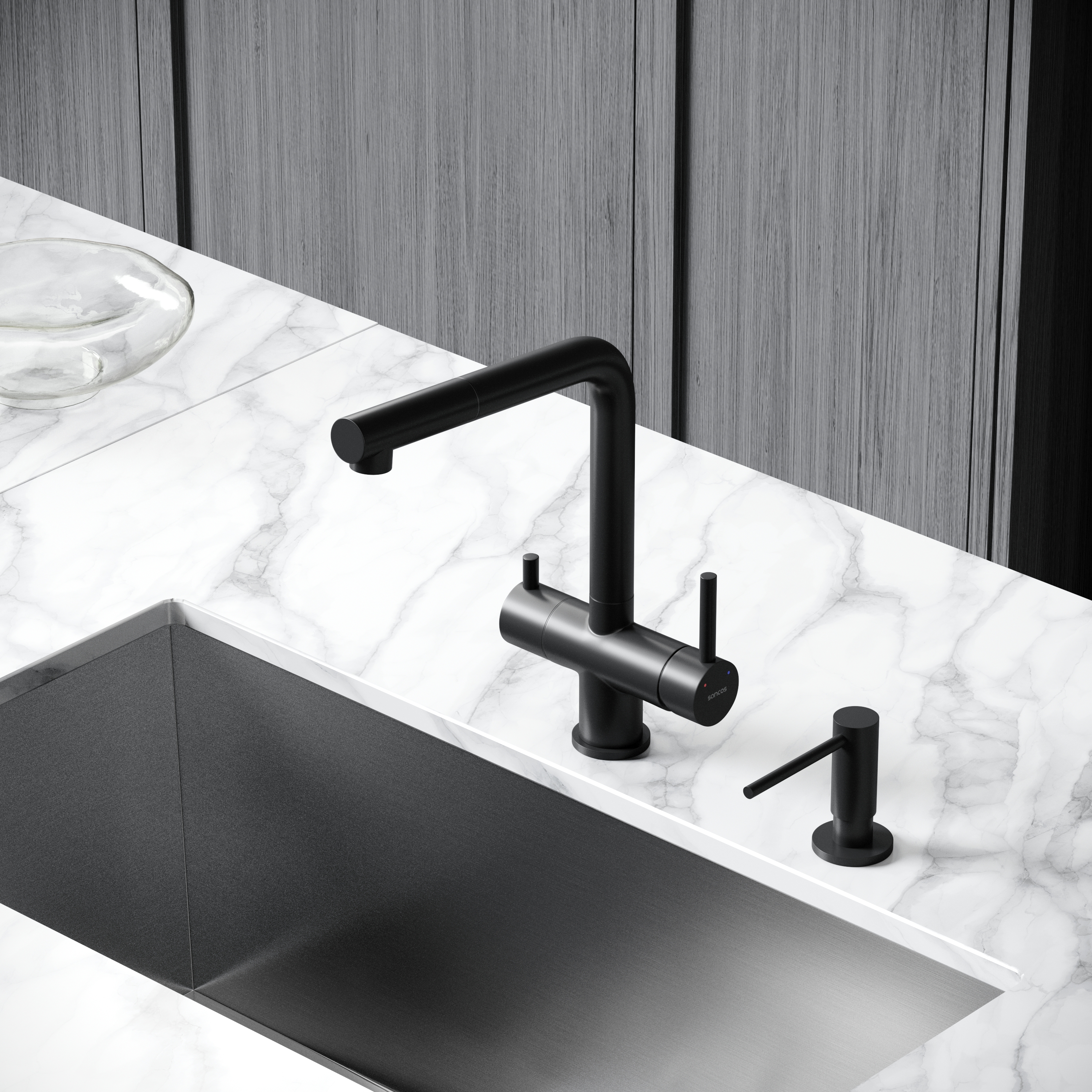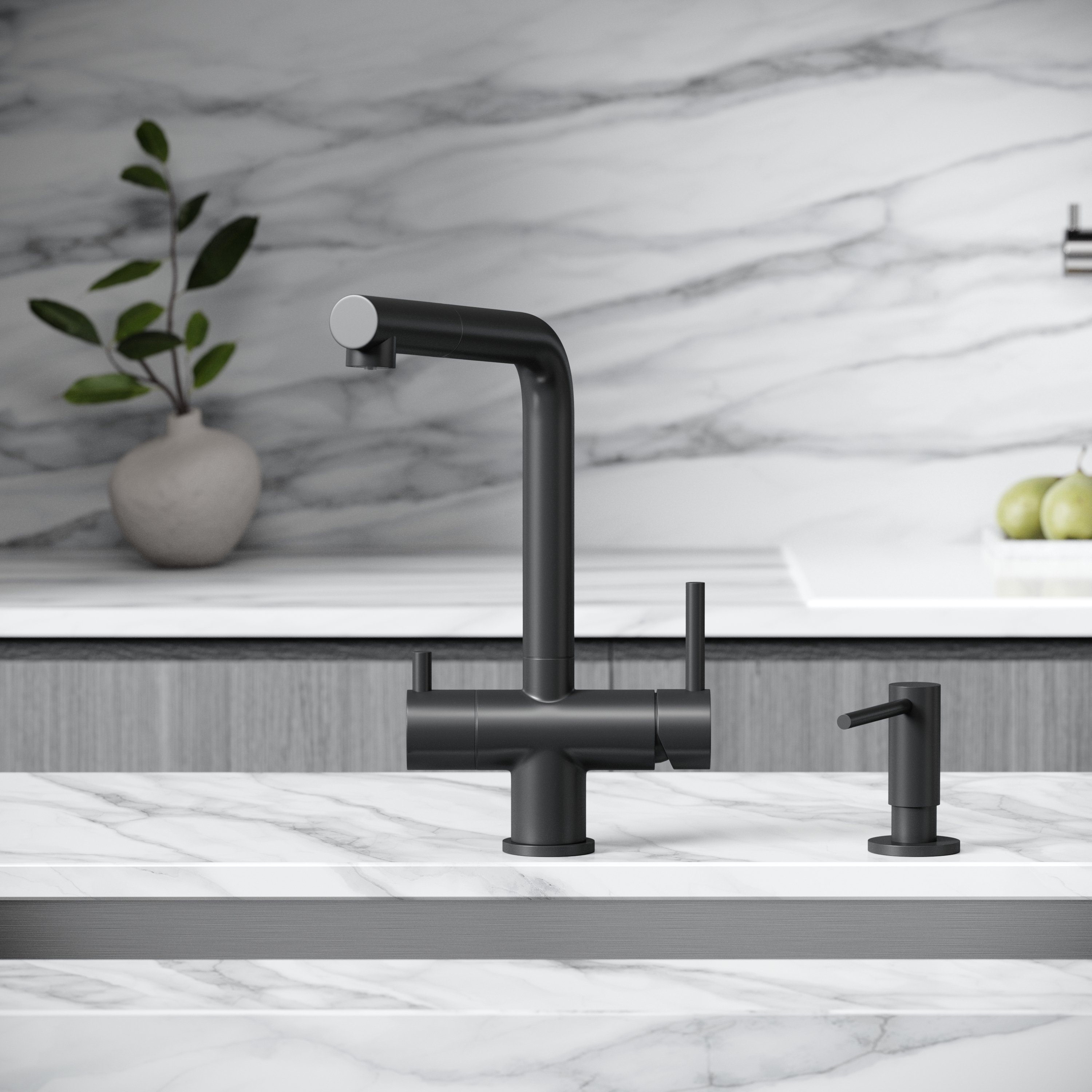 В комплекте: смеситель, комплект для подключения к фильтру, подводка для воды, монтажный комплект