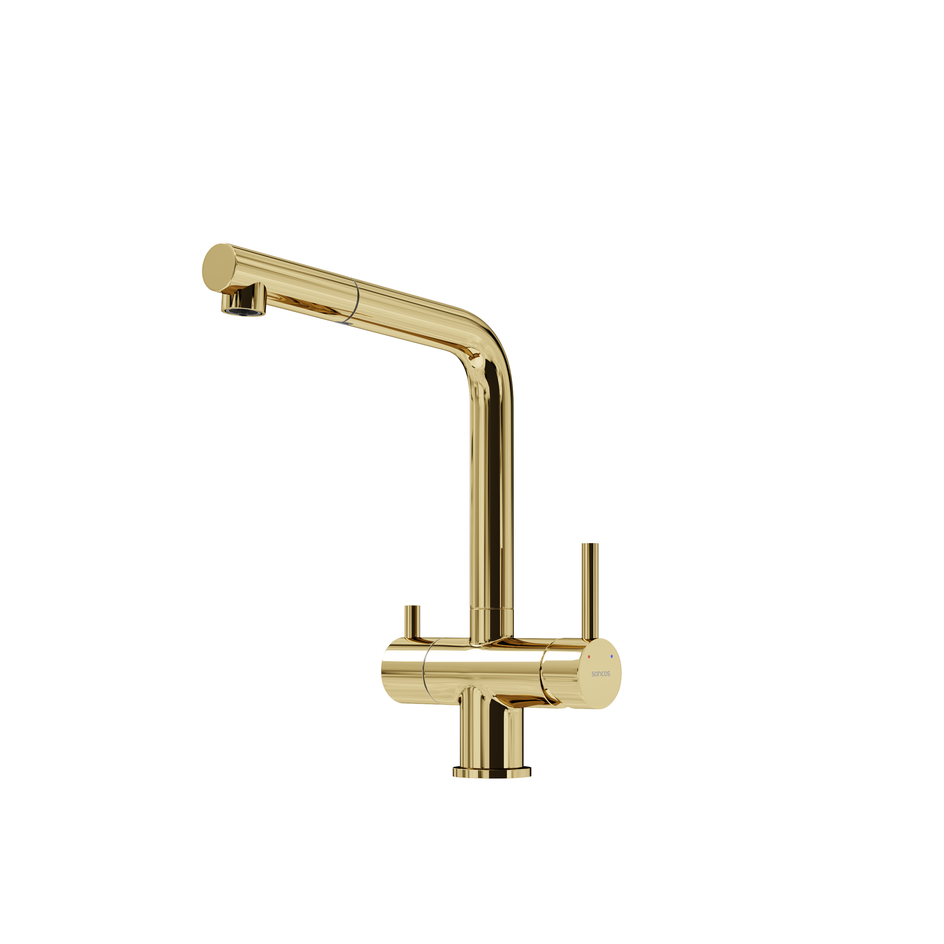 В комплекте: смеситель, комплект для подключения к фильтру, подводка для воды, монтажный комплект