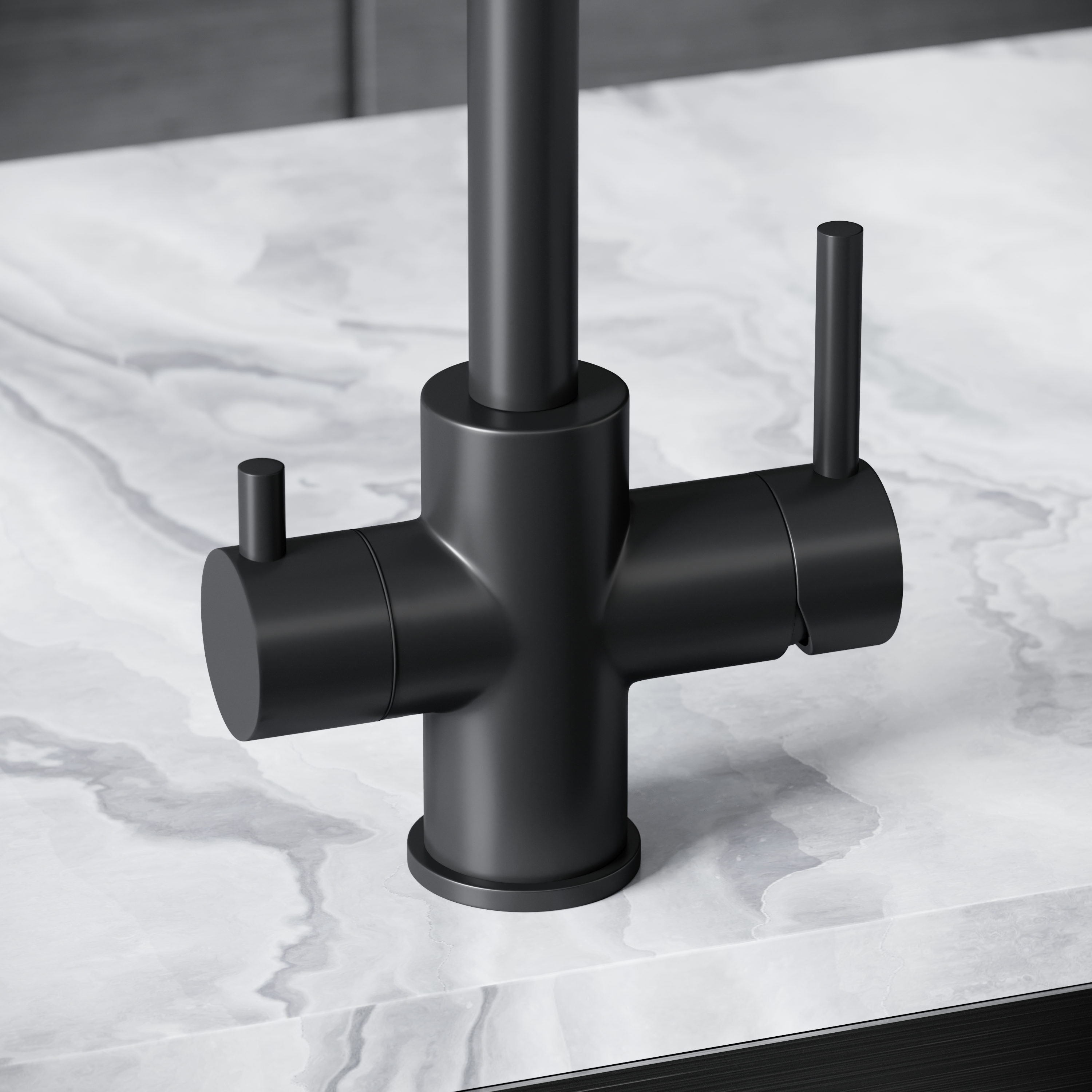 В комплекте: смеситель, комплект для подключения к фильтру, подводка для воды, монтажный комплект