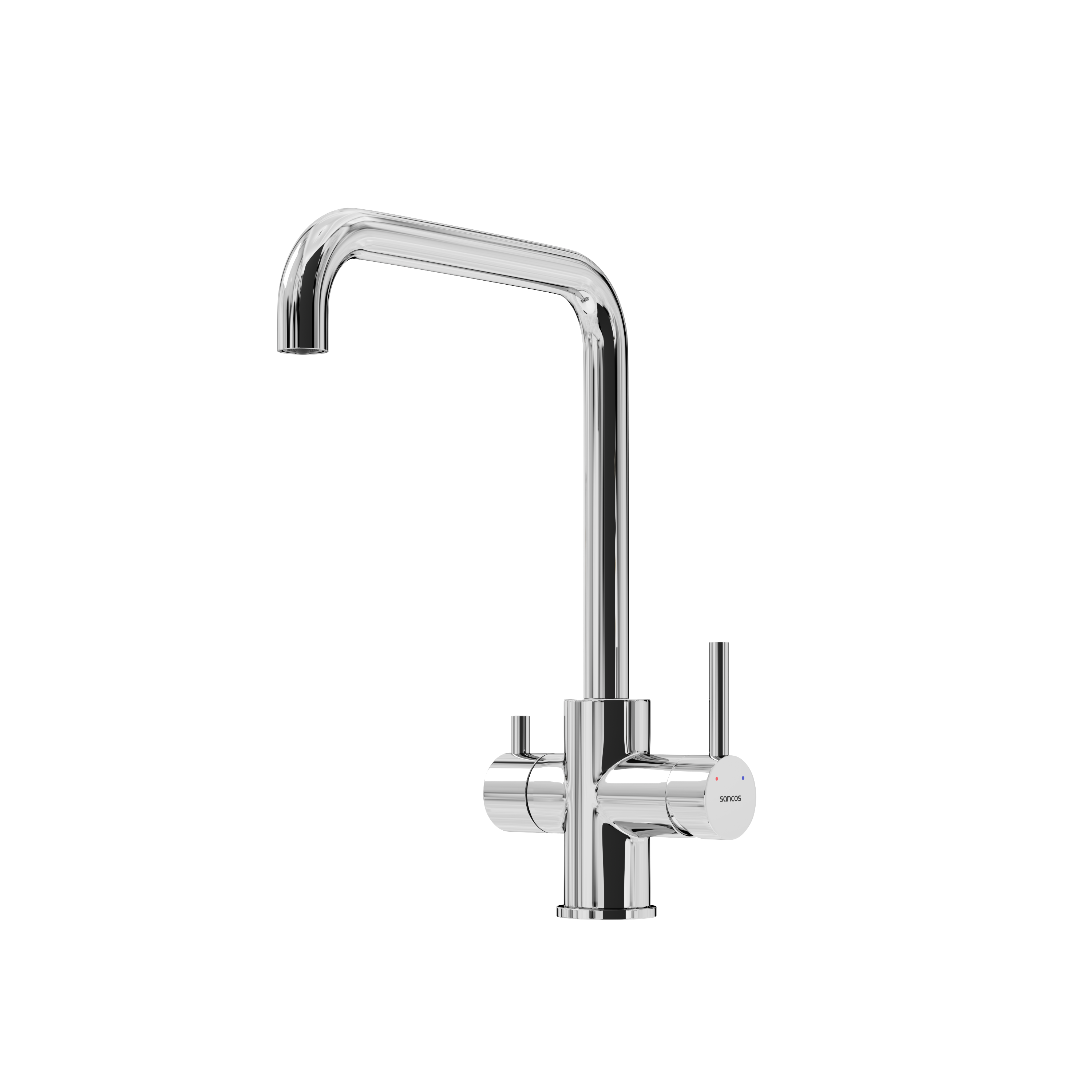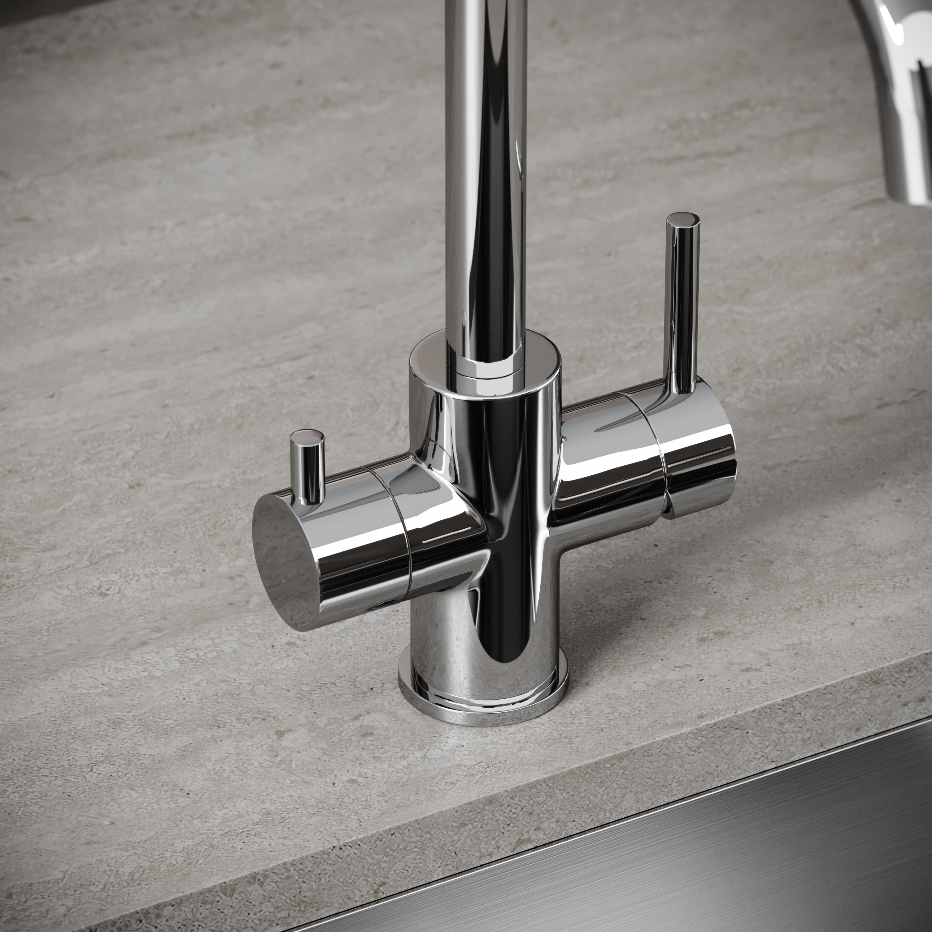В комплекте: смеситель, комплект для подключения к фильтру, подводка для воды, монтажный комплект
