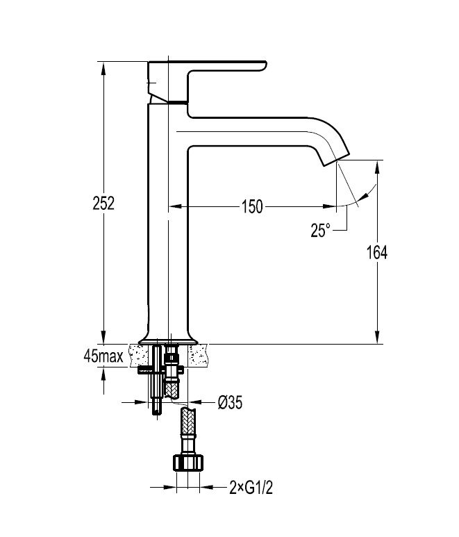 Смеситель для накладных раковин однорычажный, без донного клапана, цвет хром.