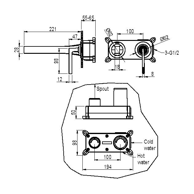 Особенности монтажа:- Подводка 1/2″