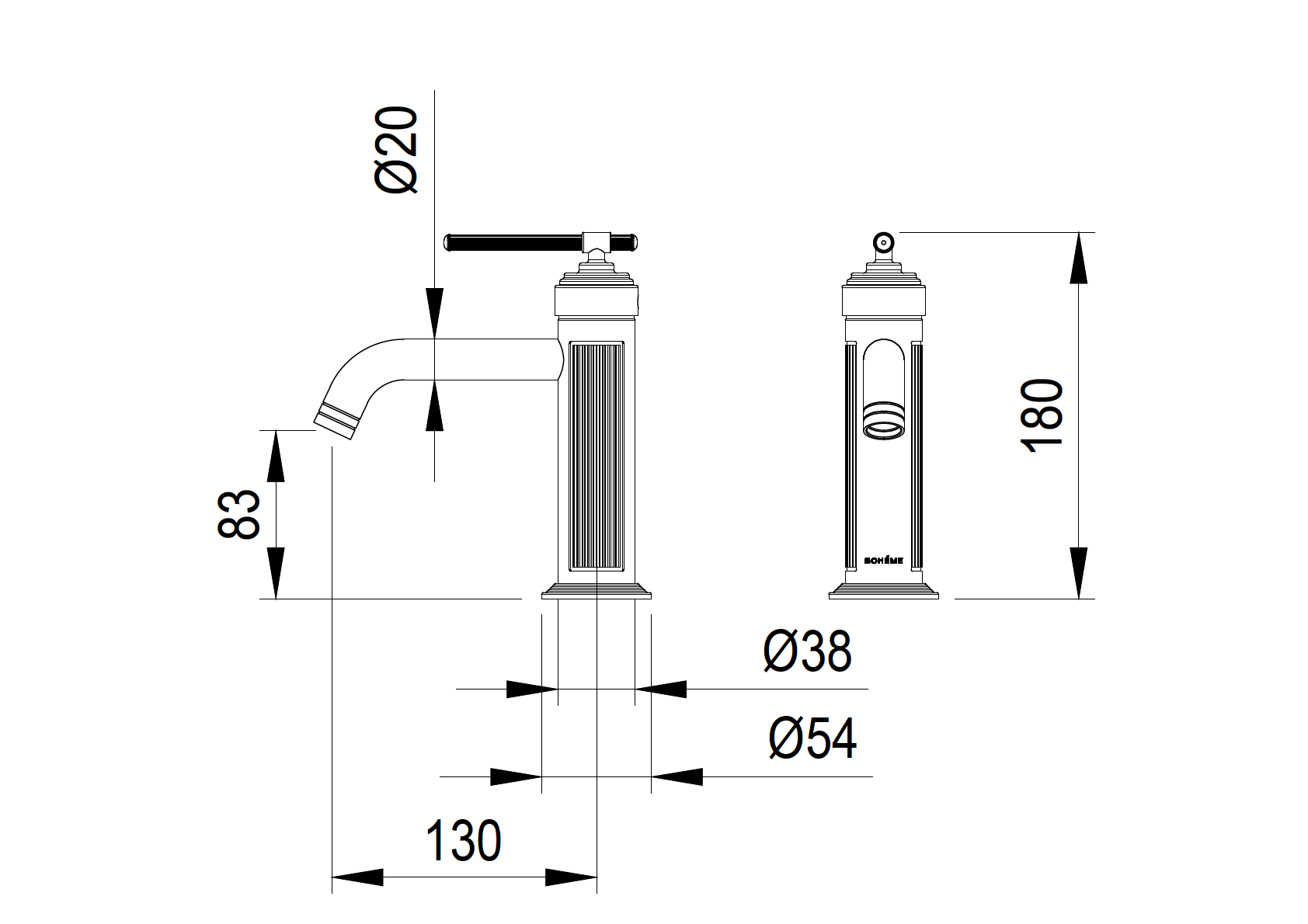 - Высота излива (расстояние от основания до крана): 8,3 см