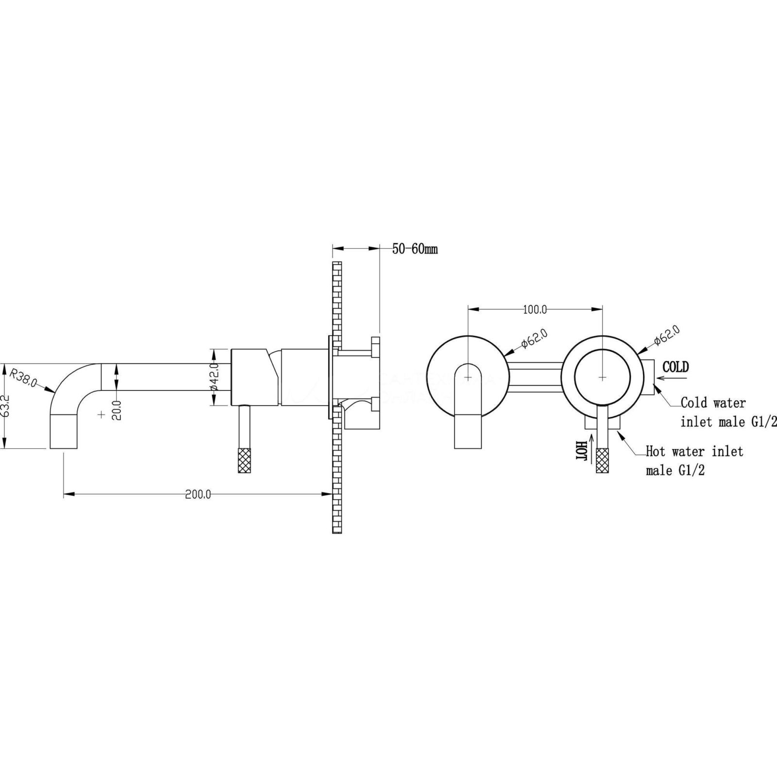 - Длина излива (расстояние от корпуса смесителя до конца излива): 20 см